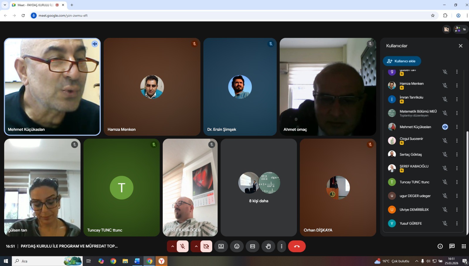 Muafiyet ve Yatay Geçiş Komisyonu: Prof. Dr. Tuncay TUNÇ ve İlgili Sınıf Danışmanı
