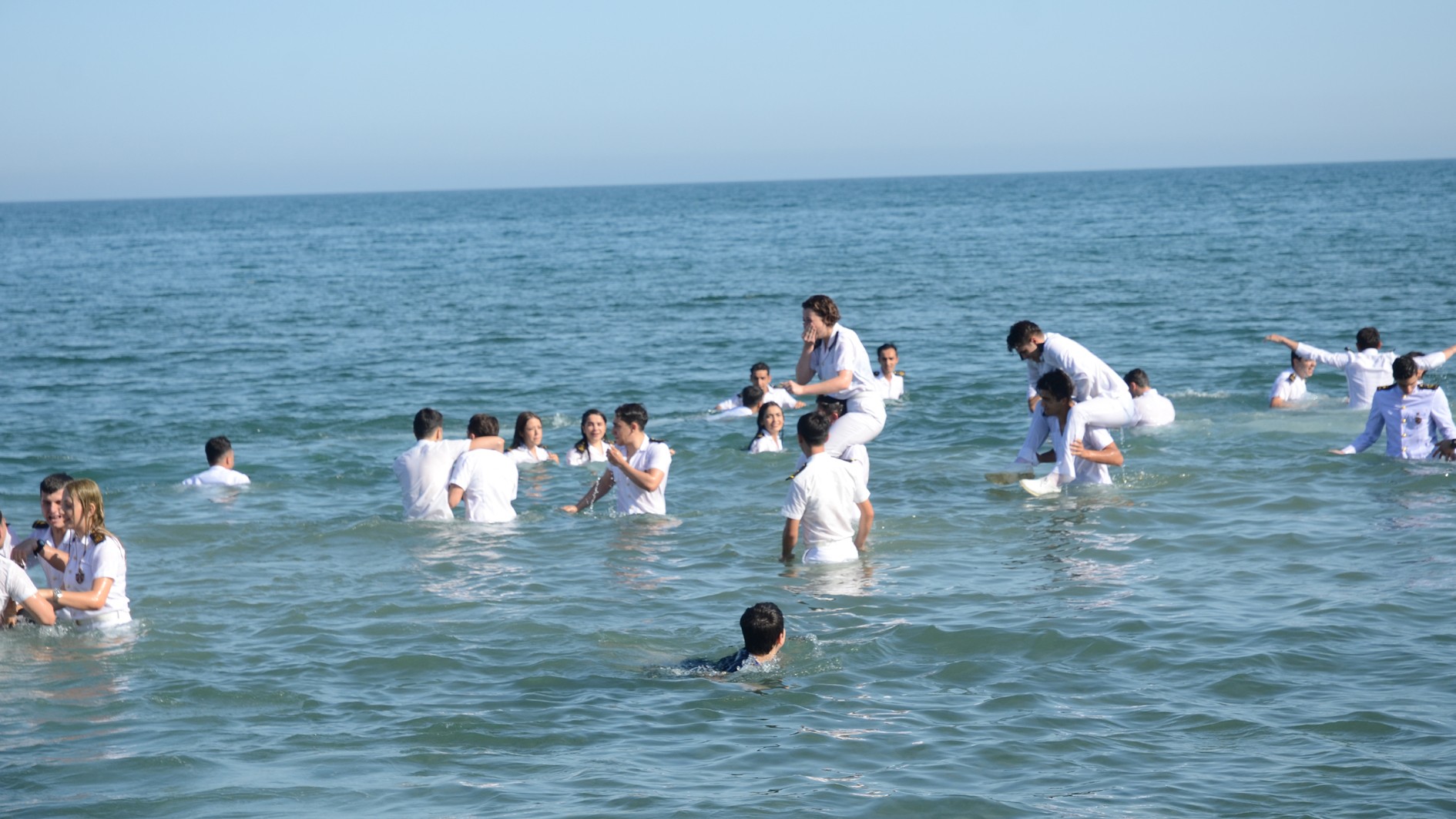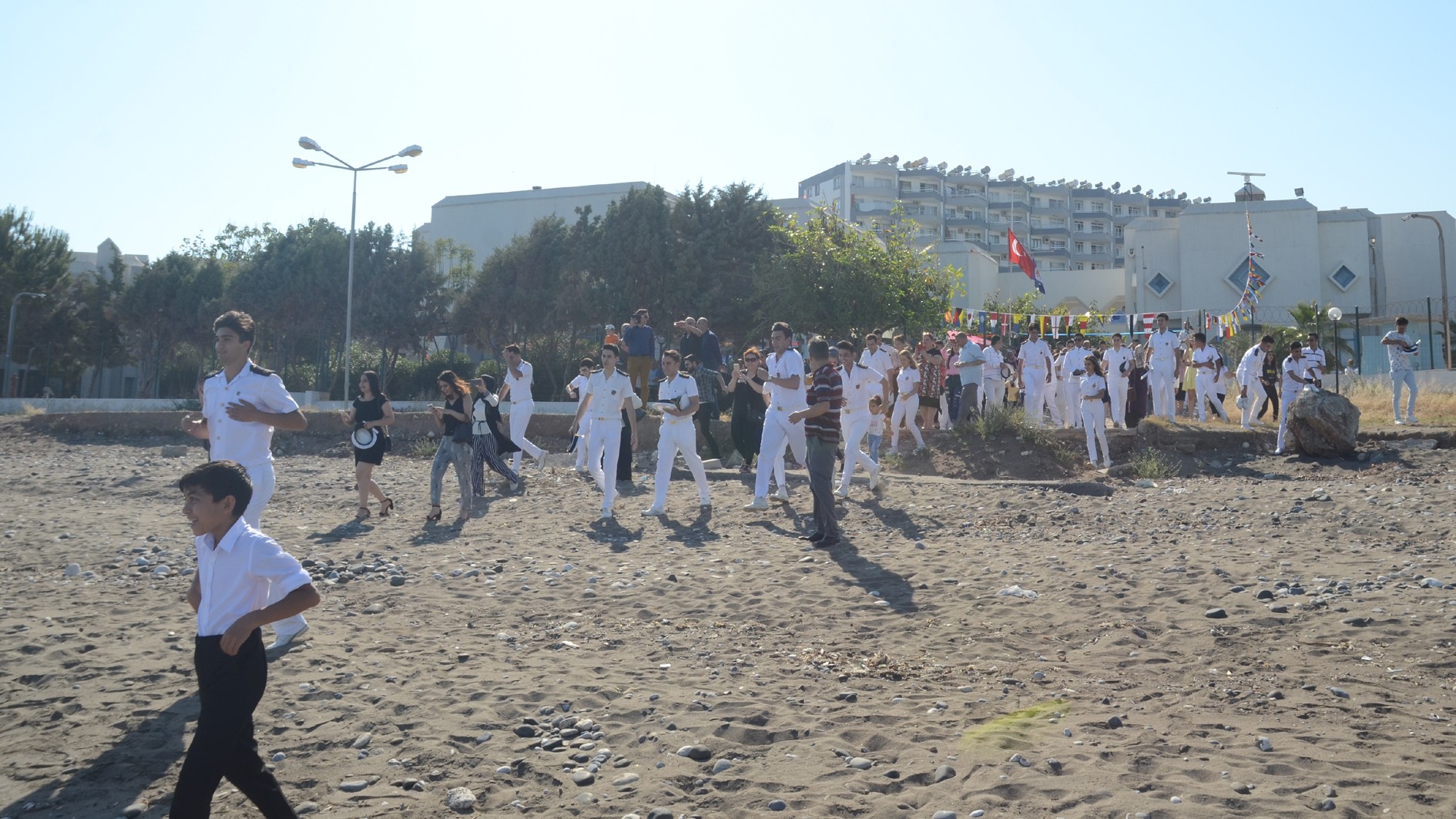 Üniversitemiz Denizcilik Meslek Yüksekokulu 2018-2019 akademik yılı mezunları, düzenlenen bir törenle uğurlandı. 27 Mayıs Pazartesi günü Tece Kampüsü'nde gerçekleşen törenin sonunda, mezunların üniformalarıyla denize girme geleneği renkli görüntülere sahne oldu.