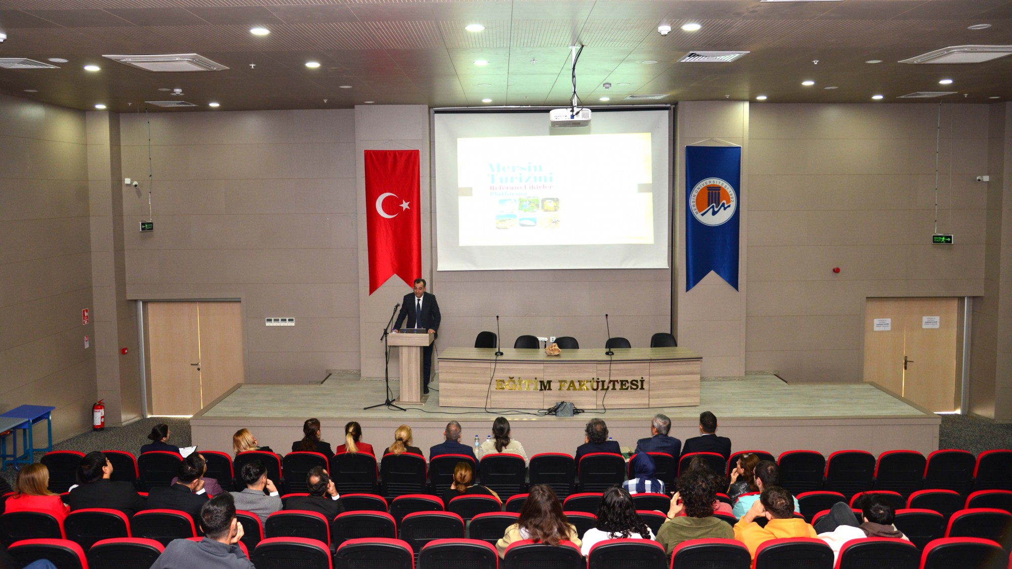 17 ile 19 Nisan 2024 tarihleri arasında, Turizm Fakültemizin düzenleyeceği ve birçok kurumun paydaşı olacağı Genç Girişimci Mersin Turizm Fuarı'nın ilk eğitim paneli, 1 Aralık Cuma günü Üniversitemiz Eğitim Fakültesi Prof. Dr. Ahmet Çamsarı Konferans Salonu'nda yapıldı.