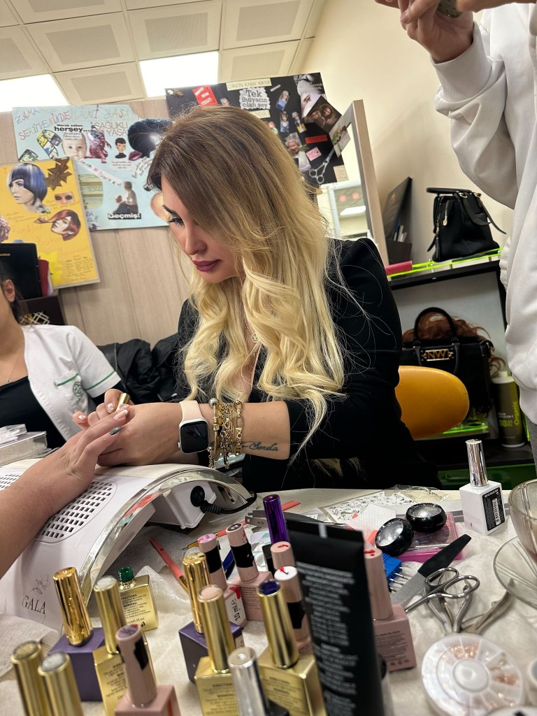 Yeni Nesil Protez Tırnak Tasarım Çalışması  Mezun öğrencilerimizden Hülya ŞENEL tarafından kuaförlük uygulama salonunda öğrencilerimize uygulamalı eğitim verildi.