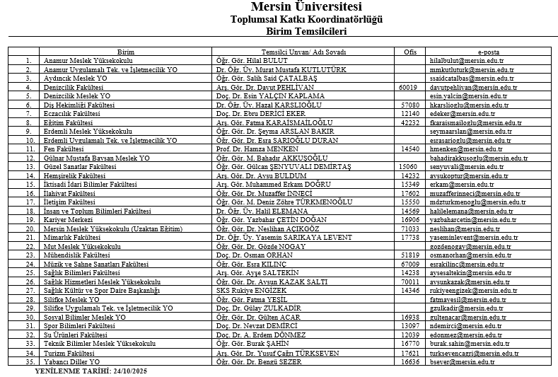 Mersin Üniversitesi Toka Birim Temsilcilerimiz