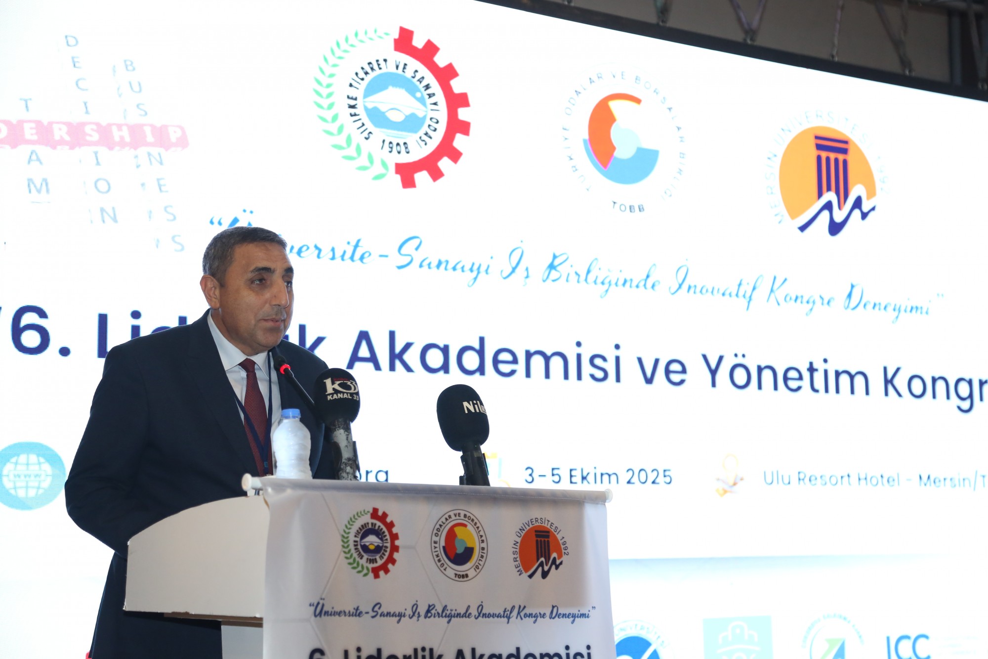 Saygı duruşu ve İstiklal Marşı’nın ardından başlayan programda açılış konuşmasını gerçekleştiren Rektörümüz Prof. Dr. Erol Yaşar, “Liderlik Akademisi, 2019 yılından bu yana iş dünyasının temsilcileriyle akademik bilginin buluştuğu, ülkemiz için değer üreten özgün bir platform haline gelmiştir. Mersin Üniversitesi olarak bu projenin paydaşı olmaktan ve en başından itibaren katkı sunmaktan onur duyuyoruz. Bilimsel bilginin sahaya taşınmadığı, sanayi ve girişimcilik ekosistemiyle buluşturulmadığı sürece gelişmelerin kalıcı olmayacağını biliyoruz. Bizler için üniversite-sanayi iş birliği bir tercih değil, toplumsal gelişmenin temel şartıdır.” dedi.