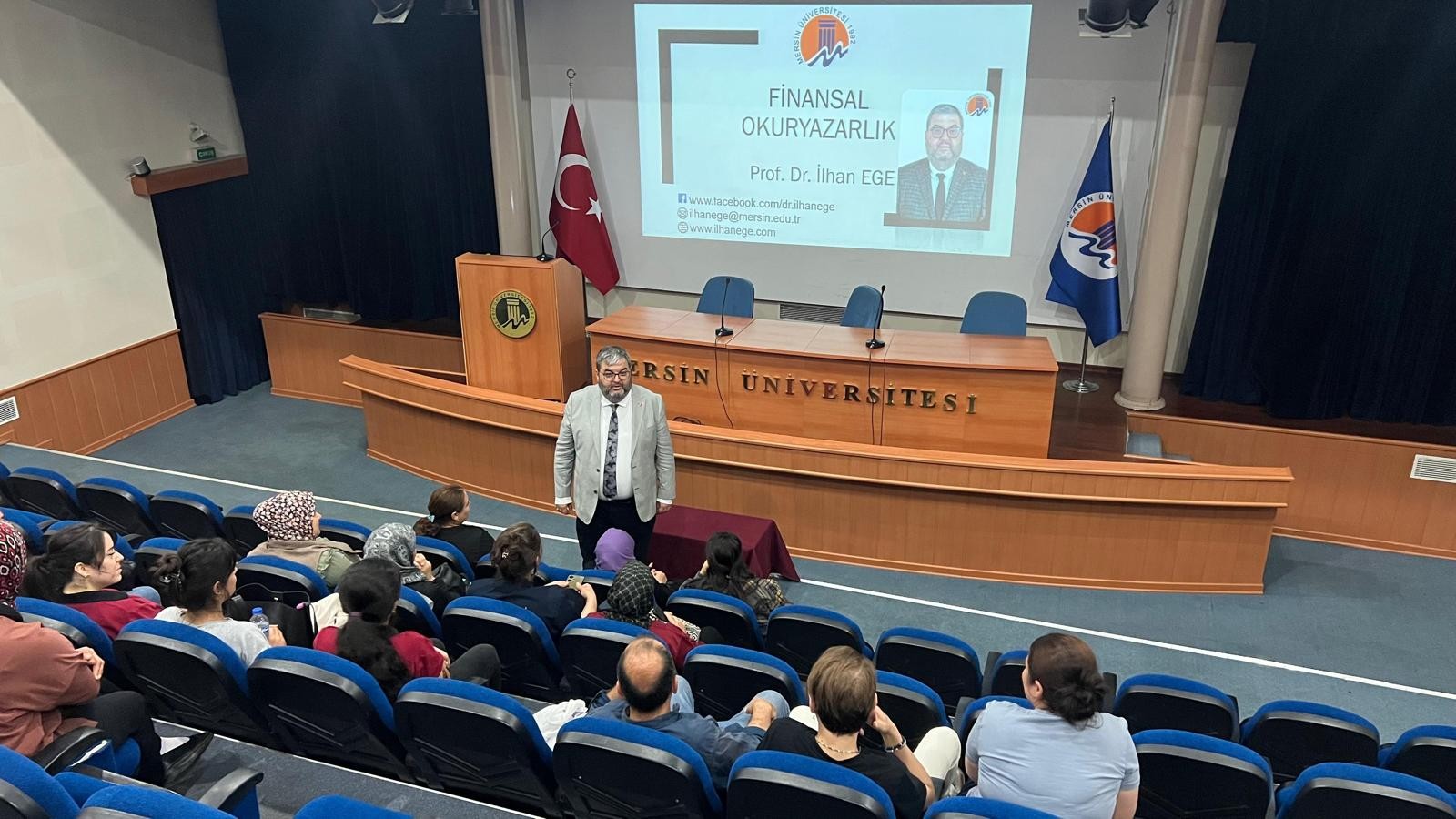 Mersin Üniversitesi Hizmet İçi Eğitim Müdürlüğü tarafından düzenlenen “Finansal Okuryazarlık Eğitimi”, Sosyal Bilimler Meslek Yüksekokulu Müdürü Prof. Dr. İlhan Ege tarafından gerçekleştirildi. Eğitime, üniversitemizde İŞKUR İşbaşı Eğitim Programı kapsamında görev yapan personeller katılım sağladı. Prof. Dr. Ege, eğitimde finansal okuryazarlığın bireylerin hem kişisel hem de profesyonel yaşamlarında bilinçli kararlar alabilmeleri açısından önemine vurgu yaptı.