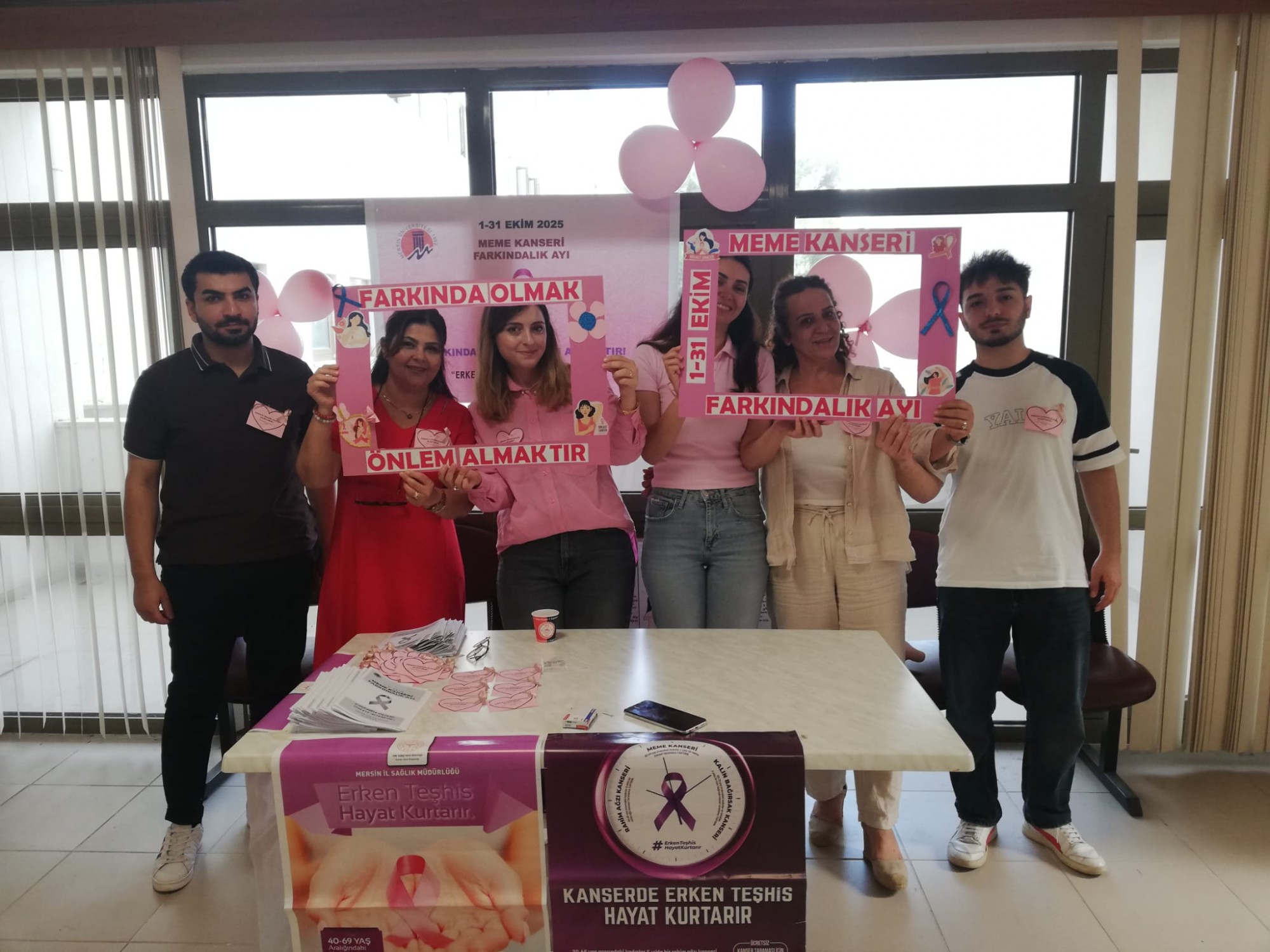 01-31 Ekim 2025 Meme Kanseri farkındalık ayı nedeniyle Fakültemiz Halk Sağlığı Anabilim Dalı tarafından Mezitli İlçe Sağlık Müdürlüğü KETEM Birimi ile birlikte 21 Ekim 2025 Salı günü Fakültemiz Temel Tıp Bilimleri Binası’nda öğrencilere ve çalışanlara yönelik meme kanserinden korunma ve taramalar konusunda bilgilendirme amaçlı etkinlik düzenlenmiştir.