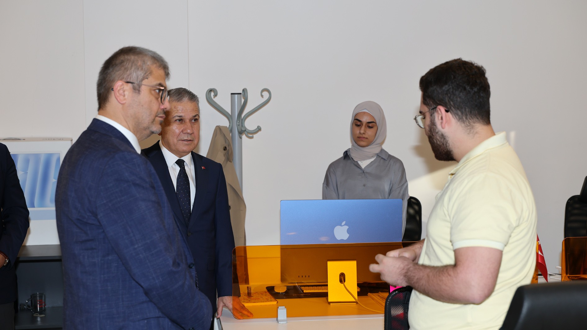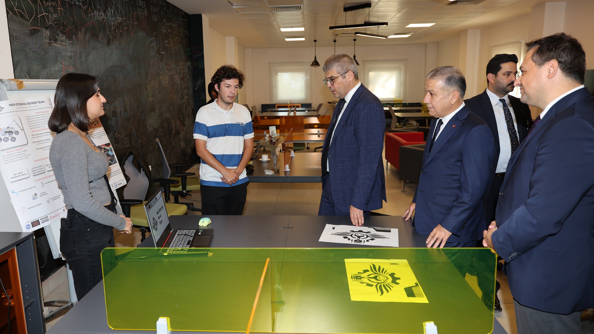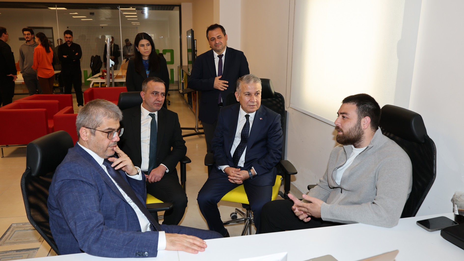 Konferansın ardından ilk olarak Üniversitemiz Girişim Limanı ziyaret edildi. Burada Girişim Limanı Müdürü Dr. Öğr. Üyesi Gürbüz Çomak tarafından karşılanan TÜBİTAK Başkanı Prof. Dr. Orhan Aydın, Rektörümüz Prof. Dr. Erol Yaşar ve Rektör Yardımcımız Prof. Dr. Mehmet Çağrı Çetin; merkezdeki genç girişimcilerle tanışarak sohbet etti ve projeleri hakkında bilgi aldı.
