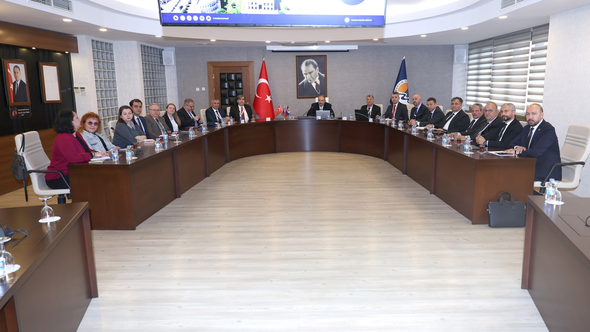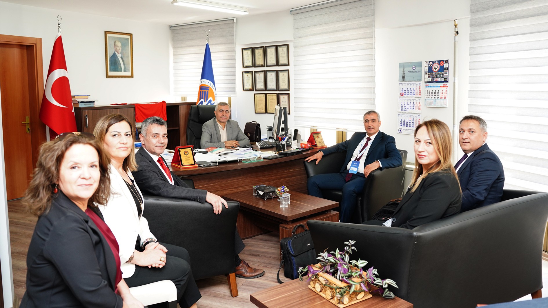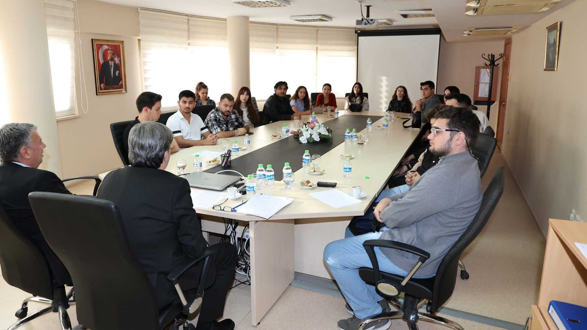 Prof. Dr. Kamil Gürel, Prof. Dr. Alper Bideci, Prof. Dr. Fatih Karpat, Prof. Dr. Mehmet Emin Çalışkan, Doç. Dr. Sedat Yüksel, Fakülte Sekreteri Hasanaslan Türk, lisans öğrencisi Olcaynaz Tekmen ve gözlemci Bahattin Demirliol’dan oluşan YÖKAK Değerlendirme Takımı, ilk olarak Rektörümüz Prof. Dr. Erol Yaşar ile bir araya geldi.
