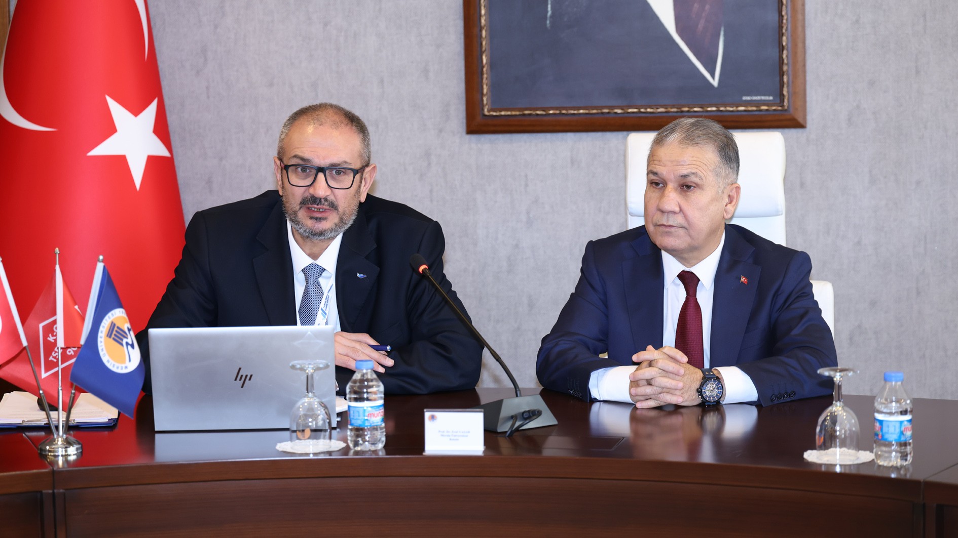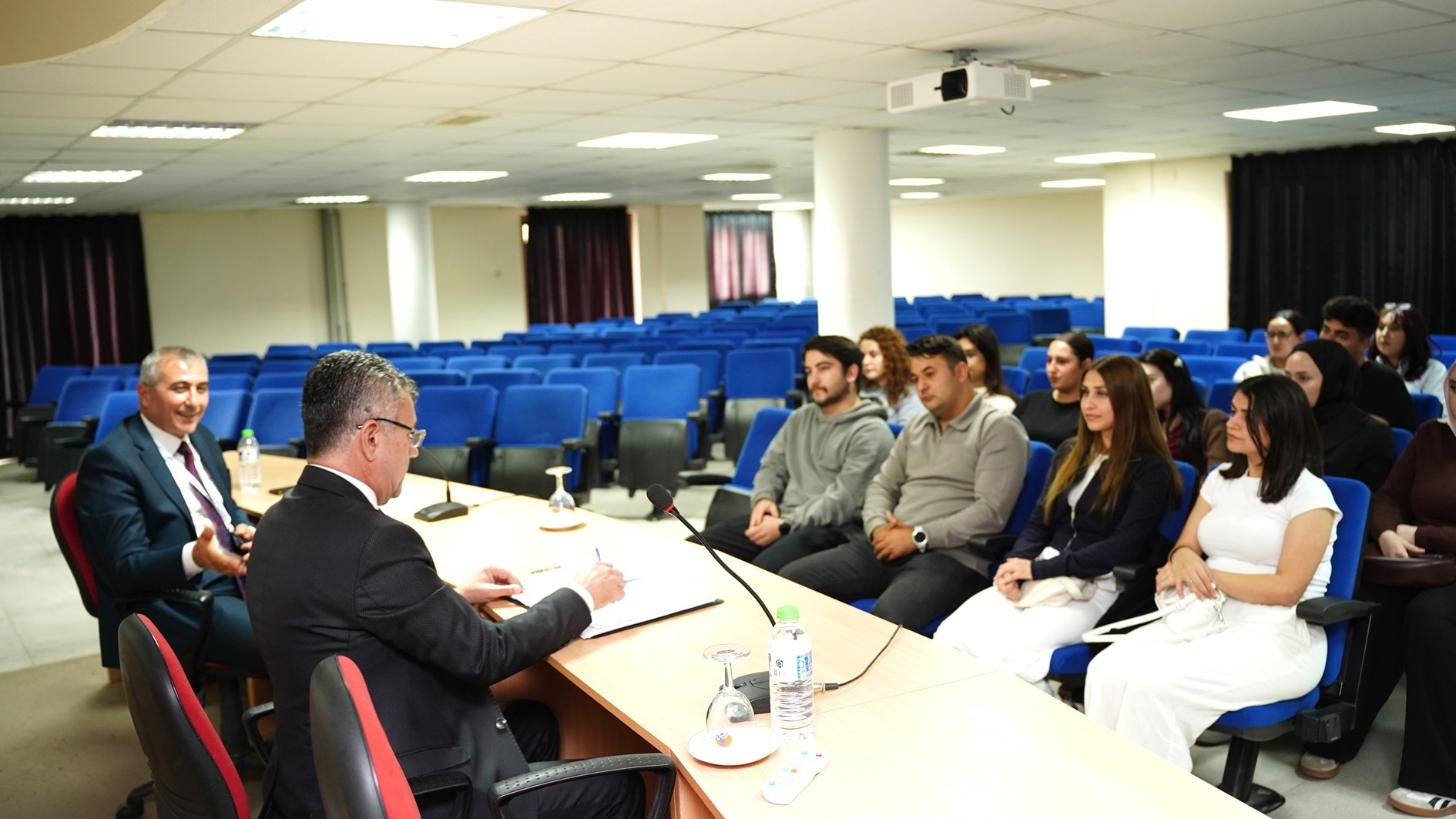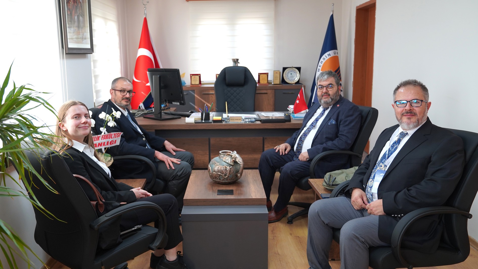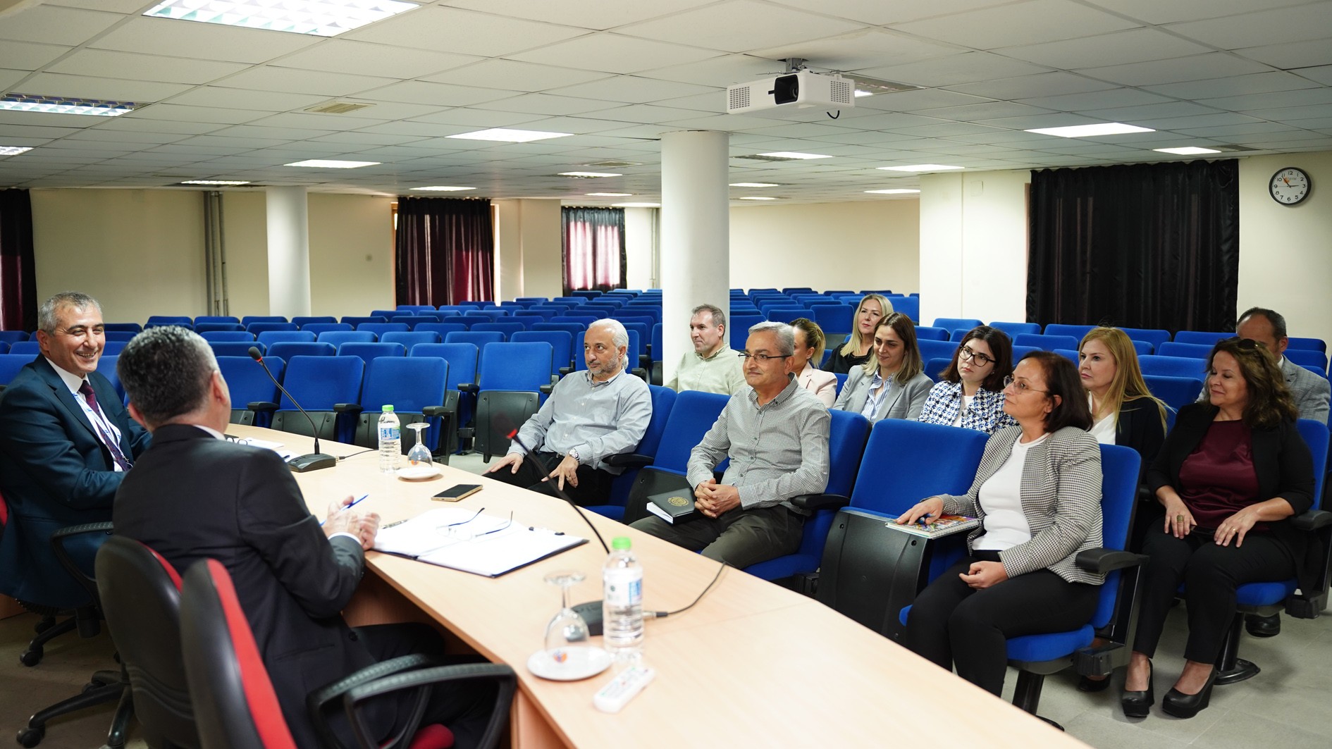Prof. Dr. Kamil Gürel, Prof. Dr. Alper Bideci, Prof. Dr. Fatih Karpat, Prof. Dr. Mehmet Emin Çalışkan, Doç. Dr. Sedat Yüksel, Fakülte Sekreteri Hasanaslan Türk, lisans öğrencisi Olcaynaz Tekmen ve gözlemci Bahattin Demirliol’dan oluşan YÖKAK Değerlendirme Takımı, ilk olarak Rektörümüz Prof. Dr. Erol Yaşar ile bir araya geldi.
