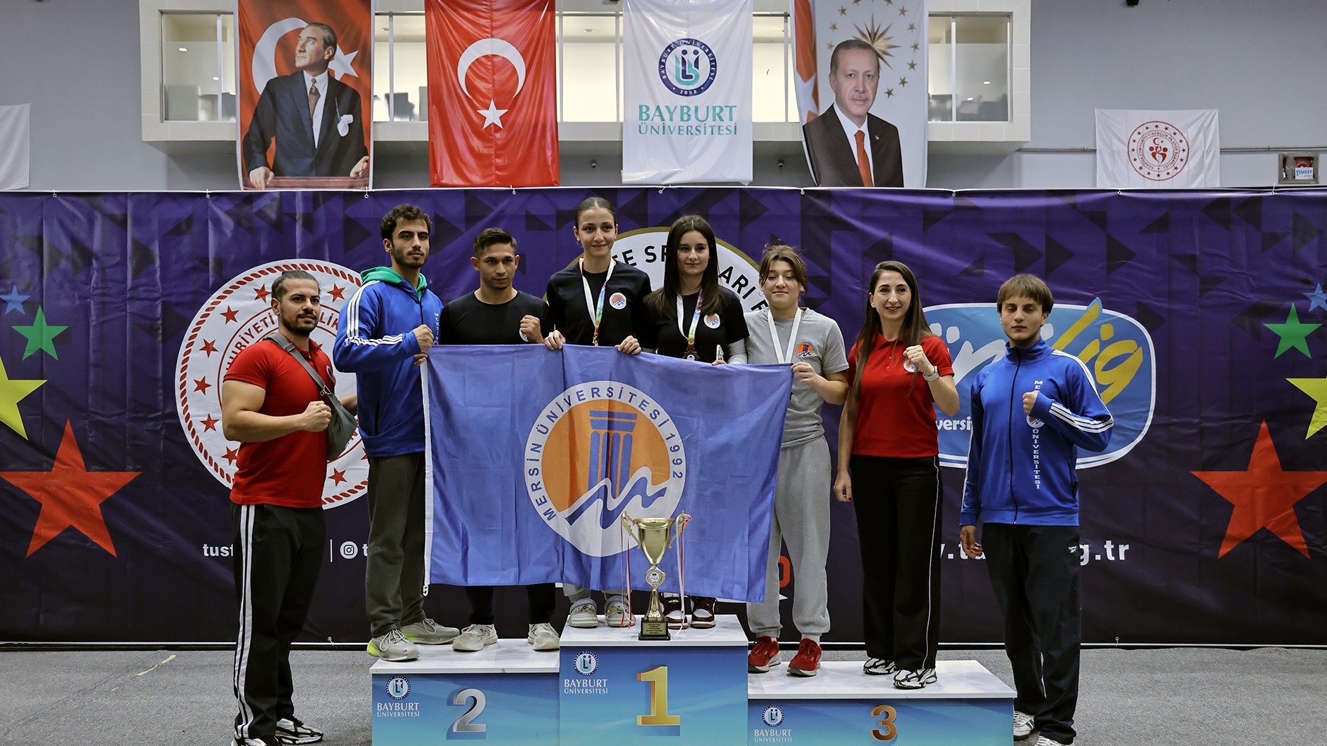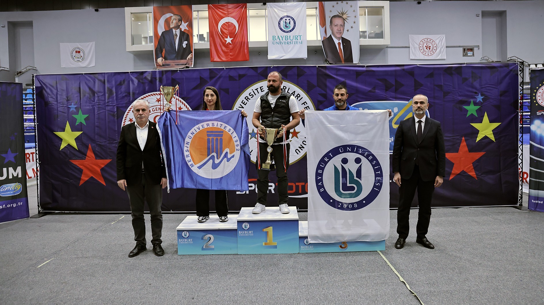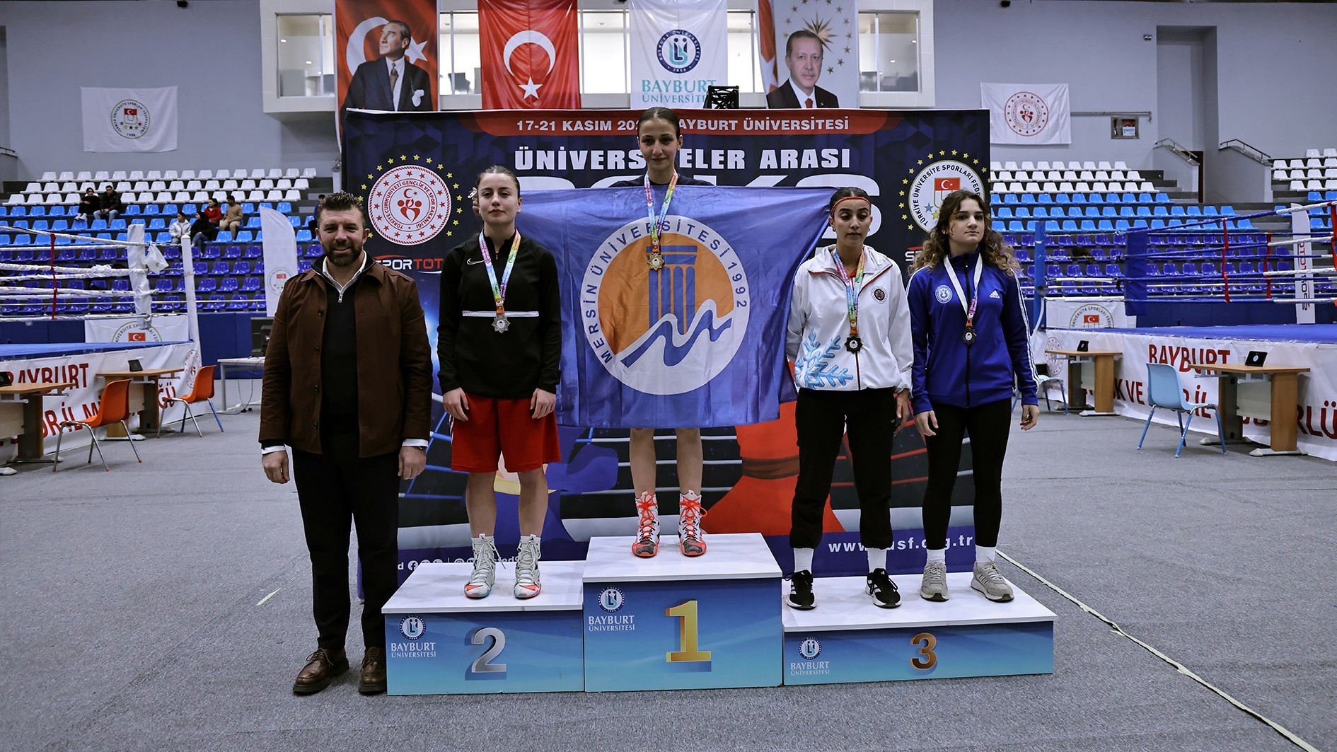 TÜSF tarafından organize edilen ve Bayburt Üniversitesi’nin ev sahipliğinde yapılan Türkiye Üniversitelerarası Boks Şampiyonası, 17-21 Kasım tarihleri arasında 43 üniversiteden 170 sporcunun katılımıyla gerçekleştirildi. Üniversitemizi 3 kadın, 3 erkek olmak üzere toplam 6 sporcu ve 1 antrenör temsil etti. Müsabakalar sonucu sporcularımız 1 altın ve 2 bronz madalya kazandı. Ayrıca kadın takımımız maçlardaki başarılarından dolayı topladıkları puan ile genel klasmanda 2. olarak kupa kazandı. Takım antrenörü Gizem Akarsu Taşman ve sporcularımız, kendilerine desteğini esirgemeyen Rektörümüz Prof. Dr. Erol Yaşar başta olmak üzere ve emeği geçen herkese teşekkür etti.