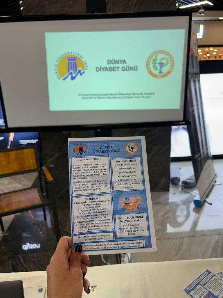 Fakültemiz Sosyal Sorumluluk ve Projeler Komisyonu tarafından 20 Kasım 2025 tarihinde “Dünya Diyabet Günü” farkındalık etkinliği gerçekleştirildi. Etkinliğe, Fakültemiz Dekanı Prof. Dr. Necmiye CANACANKATAN, Dekan Yrd. ları Doç. Dr. Mahmut ÜLGER, Dr. Öğr. Üyesi Ş. Efsun ANTMEN, Fakülte Sekreterimiz Volkan DARÇIN, öğretim elemanları ve öğrencileri katıldı. Etkinlik kapsamında, Fakültemiz öğrencileri Sayapark Alışveriş Merkezinde stant açarak, konu hakkında bilgi almak isteyen bireyleri diyabet hastalığı hakkında bilgilendirdi.