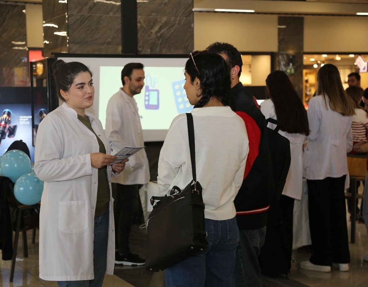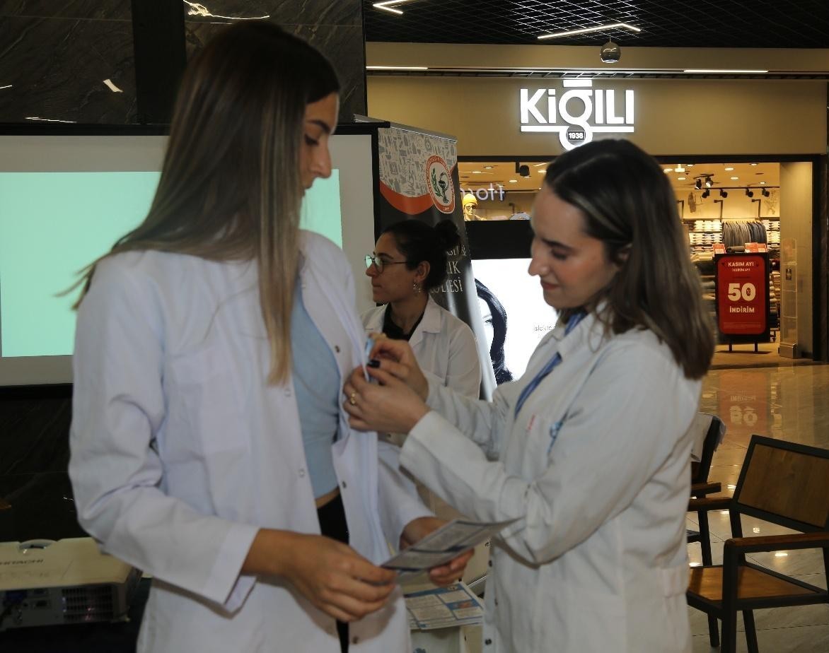 Fakültemiz öğrencileri Sayapark Alışveriş Merkezinde standımızı ziyaret eden bireyleri diyabet risk faktörleri, belirtileri, türleri, diyabetle yaşam ve tedavisi hakkında bilgilendirerek broşür dağıttı.
