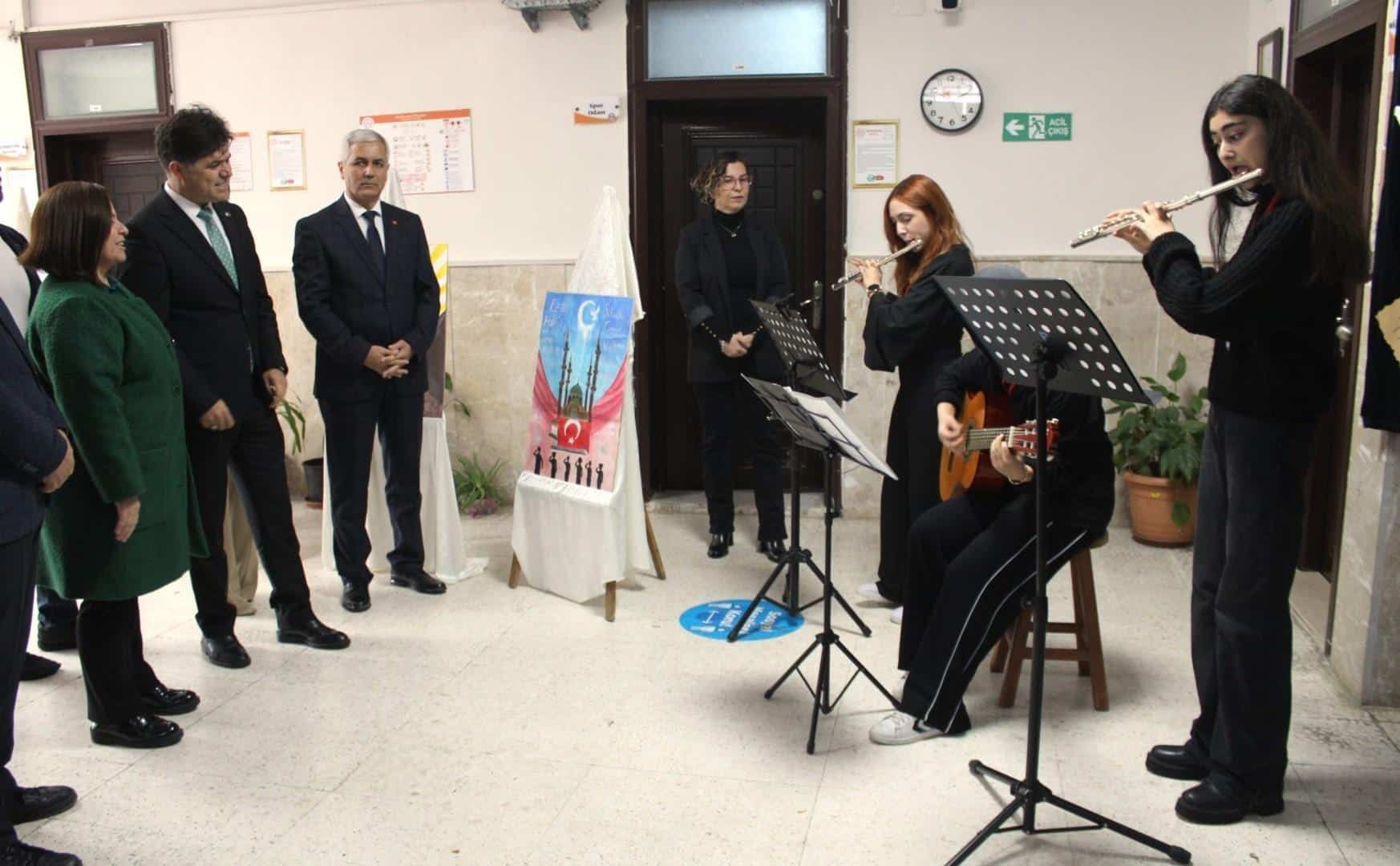İl Milli Eğitim Müdürü Muhammet Özdemirci, Prof. Dr. Emine Yılmaz Bolat'a çiçek takdimi ile teşekkürlerini iletirken Üniversite–okul iş birliğinin eğitime güç kattığını belirtti.