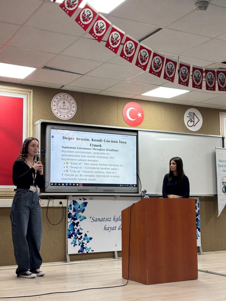 Mersin Üniversitesi Sağlık Bilimleri Fakültesi Ebelik Bölümü, 12 Aralık 2025 Cuma günü Nevit Kodallı Güzel Sanatlar Lisesi’nde Resim Bölümü kız öğrencileriyle bir araya geldi. Okulun seminer salonunda gerçekleştirilen etkinlikte, “Kadın: Zarafetin En Güçlü Hali” başlıklı interaktif bir eğitim sunumu yapıldı.