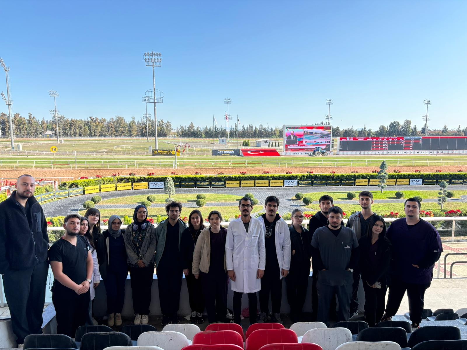 Meslek Yüksekokulumuz Veterinerlik Bölümü öğrencileri, Bölüm Öğretim Görevlisi Burak ŞAHİN ile birlikte 14 Aralık 2025 tarihinde Türkiye Jokey Kulübü (TJK) Adana Hipodromu’na yönelik teknik gezi düzenledi.