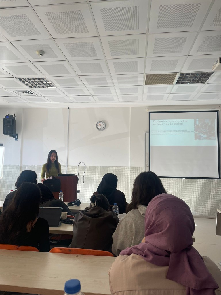 Sağlık Bilimleri Fakültesi Ebelik Bölümü ikinci sınıf öğrencileri tarafından LÖSEV (Lösemili Çocuklar Sağlık ve Eğitim Vakfı) hakkında hazırlanan sunum, akran eğitimi modeliyle ebelik birinci sınıf öğrencilerine aktarıldı. 18 Aralık 2025 tarihinde gerçekleştirilen etkinlik, dersin yürütücüsü Doç. Dr. Özlem Elvan rehberliğinde düzenlendi.