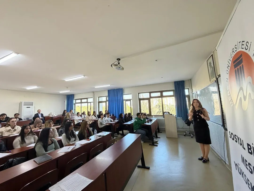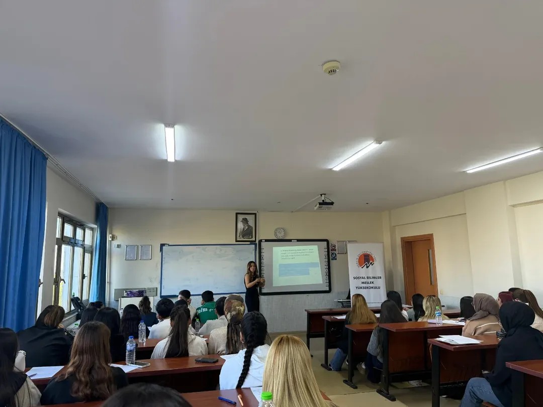 Etkinliğe Serbest Muhasebeci Mali Müşavir Dr. Öznur Dilara TAŞ katılarak, dönem sonu muhasebe işlemleri, mali müşavirlik uygulamaları ve mesleki süreçler hakkında öğrencilere kapsamlı bilgiler aktardı. Seminerde, teorik bilginin uygulamadaki karşılığına ilişkin örnekler paylaşılarak öğrencilerin mesleki farkındalıklarının artırılması hedeflendi.