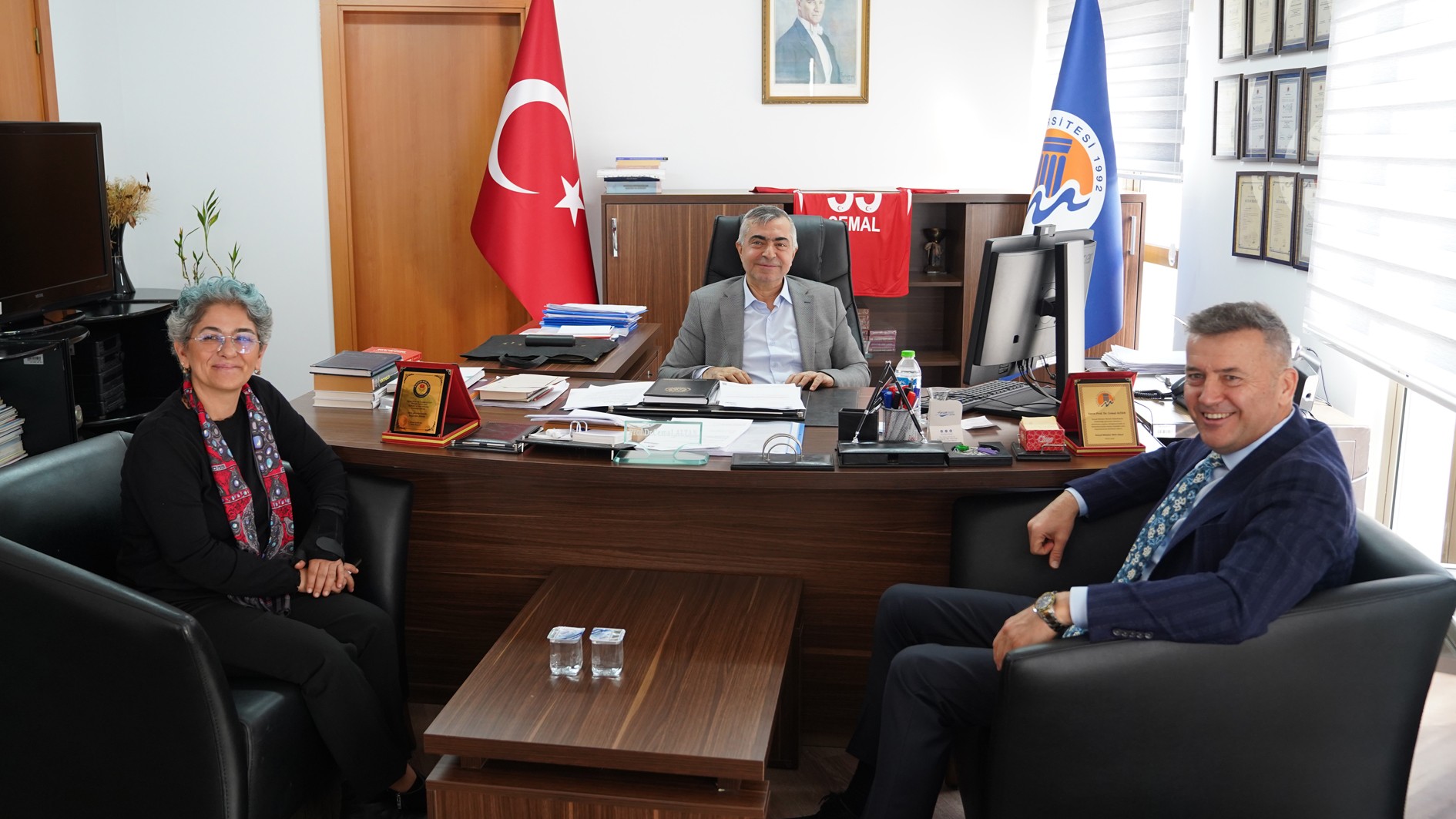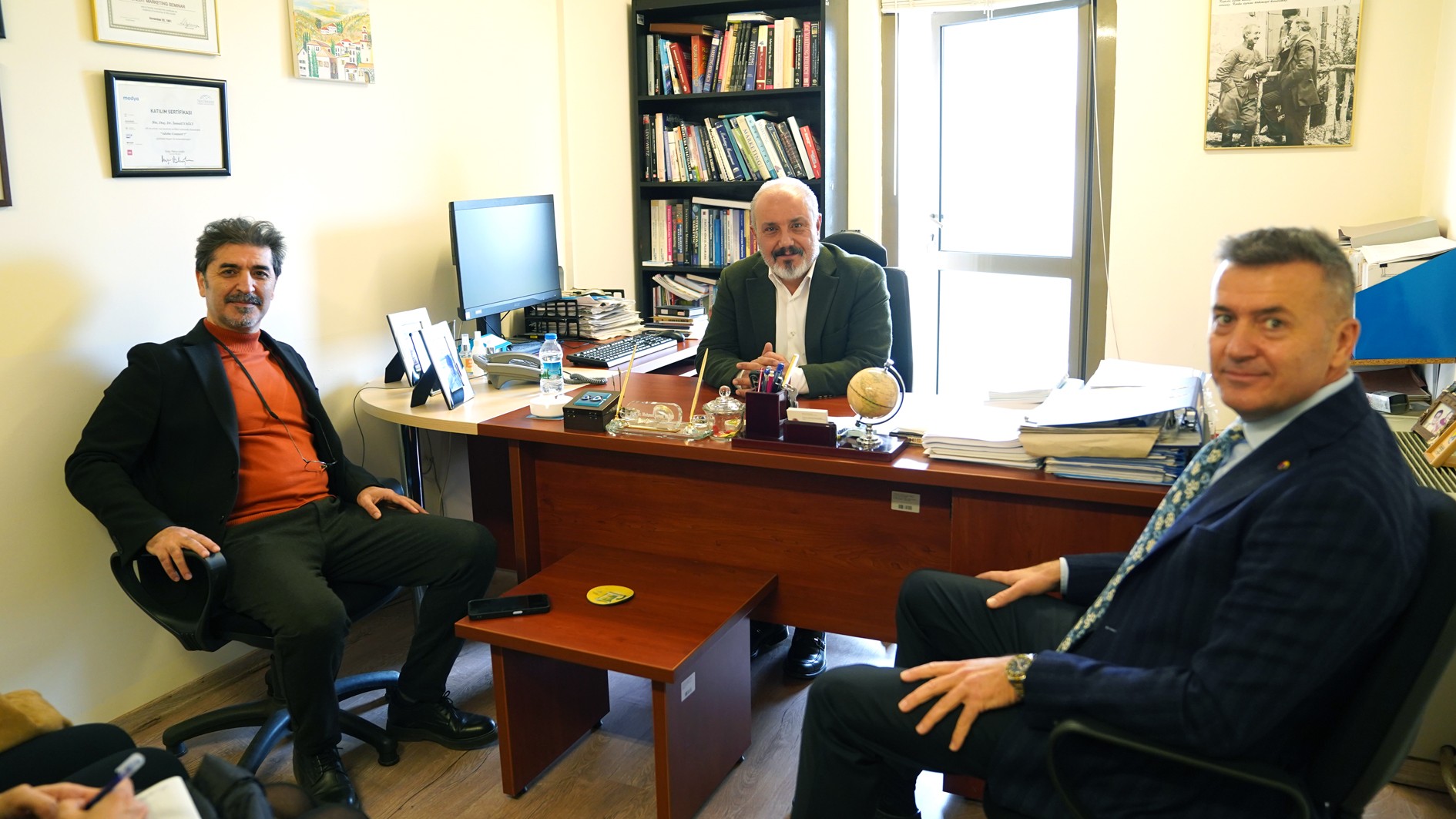 Söyleşi öncesinde MTSO Başkanı Hakan Sefa Çakır, Rektör Yardımcımız Prof. Dr. Mehmet İsmail Yağcı ve ardından İktisadi ve İdari Bilimler Fakültesi Dekanı Prof. Dr. Cemal Altan tarafından Fakülte makamlarında konuk edildi.