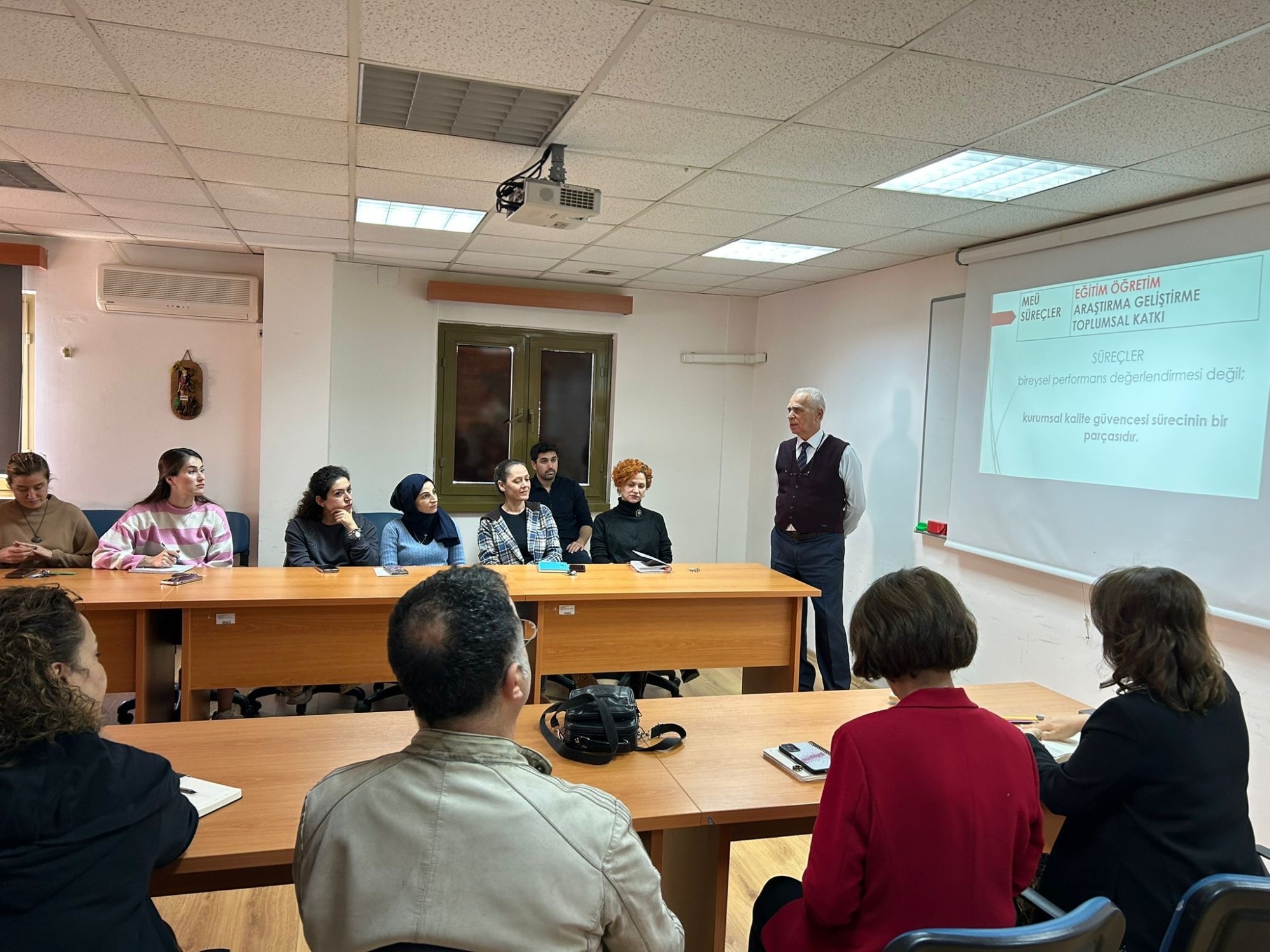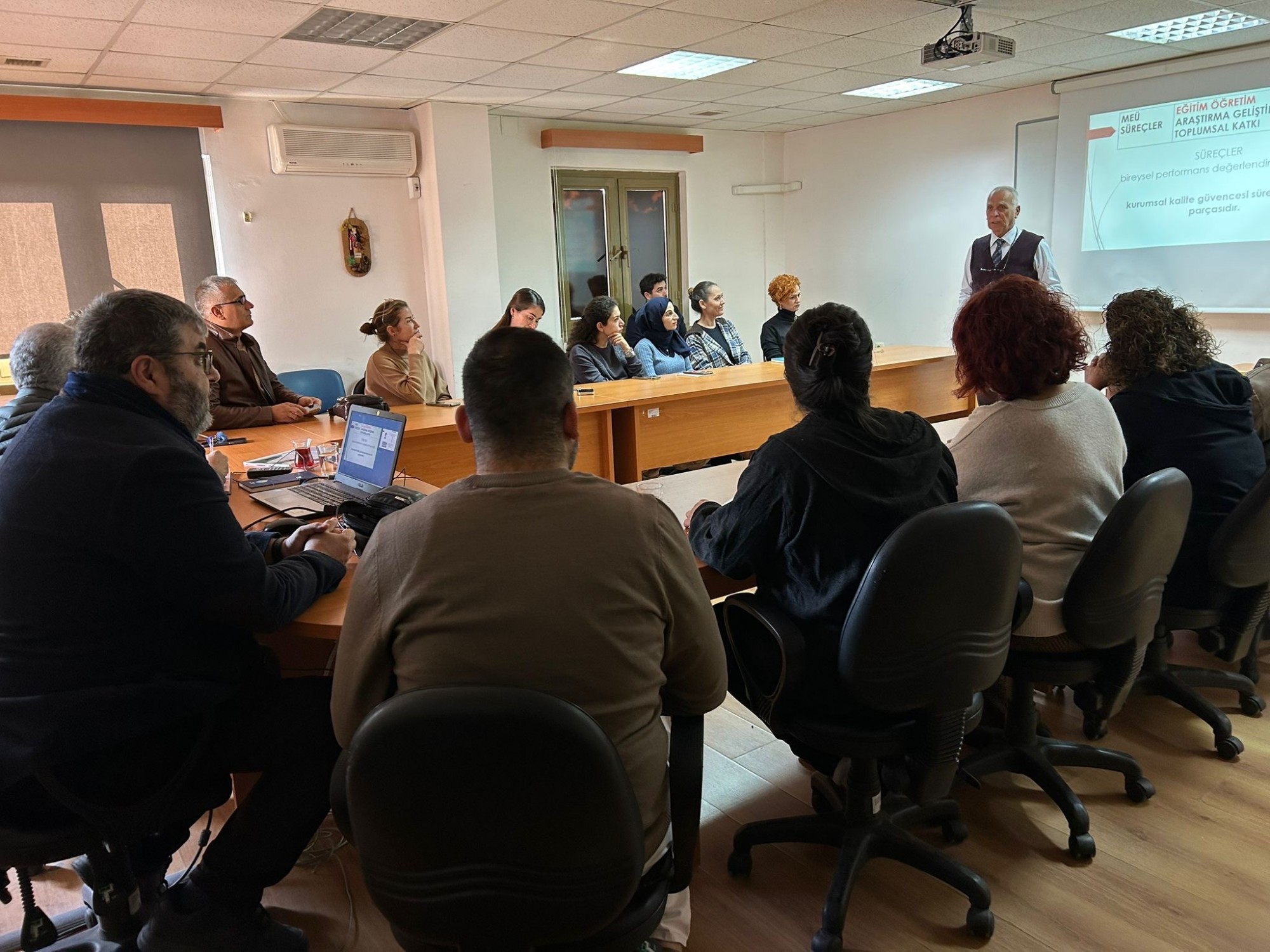 Toplantı, Eğitim-Öğretim Koordinatörlüğü Koordinatörü Prof. Dr. Celil Çakıcı tarafından gerçekleştirildi. Sunumda, öz değerlendirme raporlarının amacı, hazırlanma süreci, program düzeyinde dikkat edilmesi gereken temel ölçütler ve kalite güvencesi süreçleri kapsamlı biçimde ele alındı.