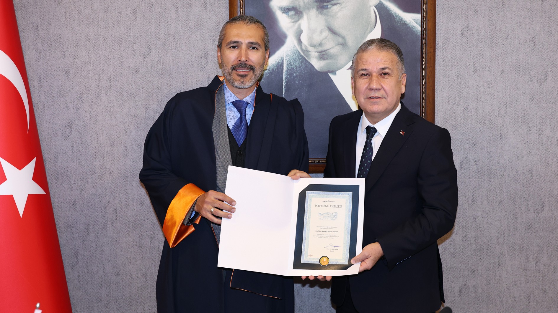 Akademik kadromuzun güçlenmesinden duyduğu memnuniyeti dile getiren Rektörümüz Prof. Dr. Erol Yaşar, öğretim üyelerimize yeni ünvanlarının hayırlı olmasını dileyerek Prof. Dr. Ceren Yegen, Prof. Dr. Kadir Abacı, Prof. Dr. Recep Ünal, Prof. Dr. Mustafa Serkan Yalçın ve Prof. Dr. Umut Ballı’ya profesörlük belgelerini takdim etti.