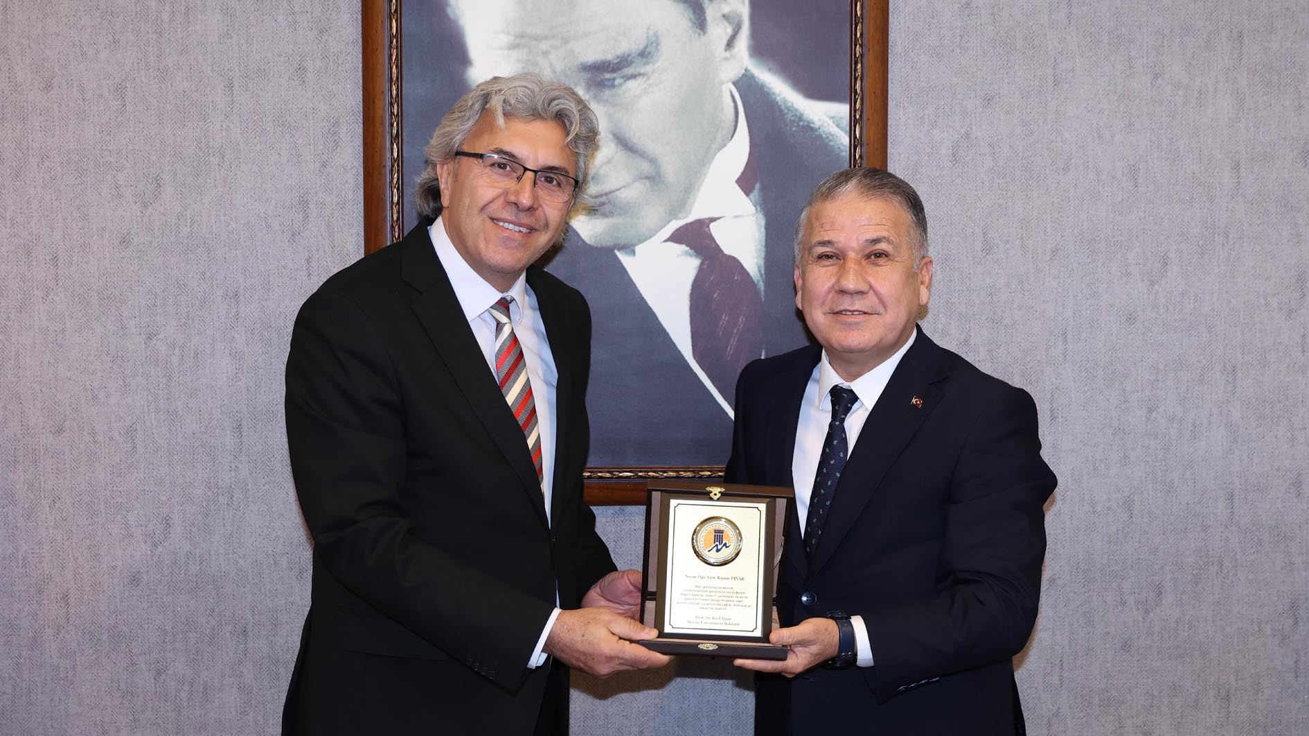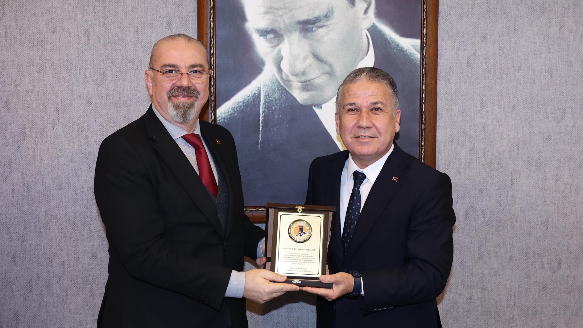 Bu kapsamda; Hemşirelik Fakültesi, Sağlık Bilimleri Fakültesi ve İçel Sağlık Yüksekokulu’ndaki görevlerini tamamlayan Prof. Dr. Ayda Çelebioğlu’na, Su Ürünleri Fakültesi Dekanlığı görevini tamamlayan Prof. Dr. Mehmet Tahir Alp’e, Sosyal Bilimler Enstitüsü Müdürlüğü görevini tamamlayan Prof. Dr. Yusuf Gürhan Topçu’ya, Güzel Sanatlar Enstitüsü Müdürlüğü görevini tamamlayan Prof. Dr. Savaş Yıldırım’a, Takı Teknolojisi ve Tasarımı Yüksekokulu Müdürlüğü görevini tamamlayan Prof. Can Küçüktepepınar’a ve Mut Meslek Yüksekokulu Müdürlüğü görevini tamamlayan Öğr. Gör. Kasım Pınar’a plaketlerini Rektörümüz Prof. Dr. Erol Yaşar takdim etti.