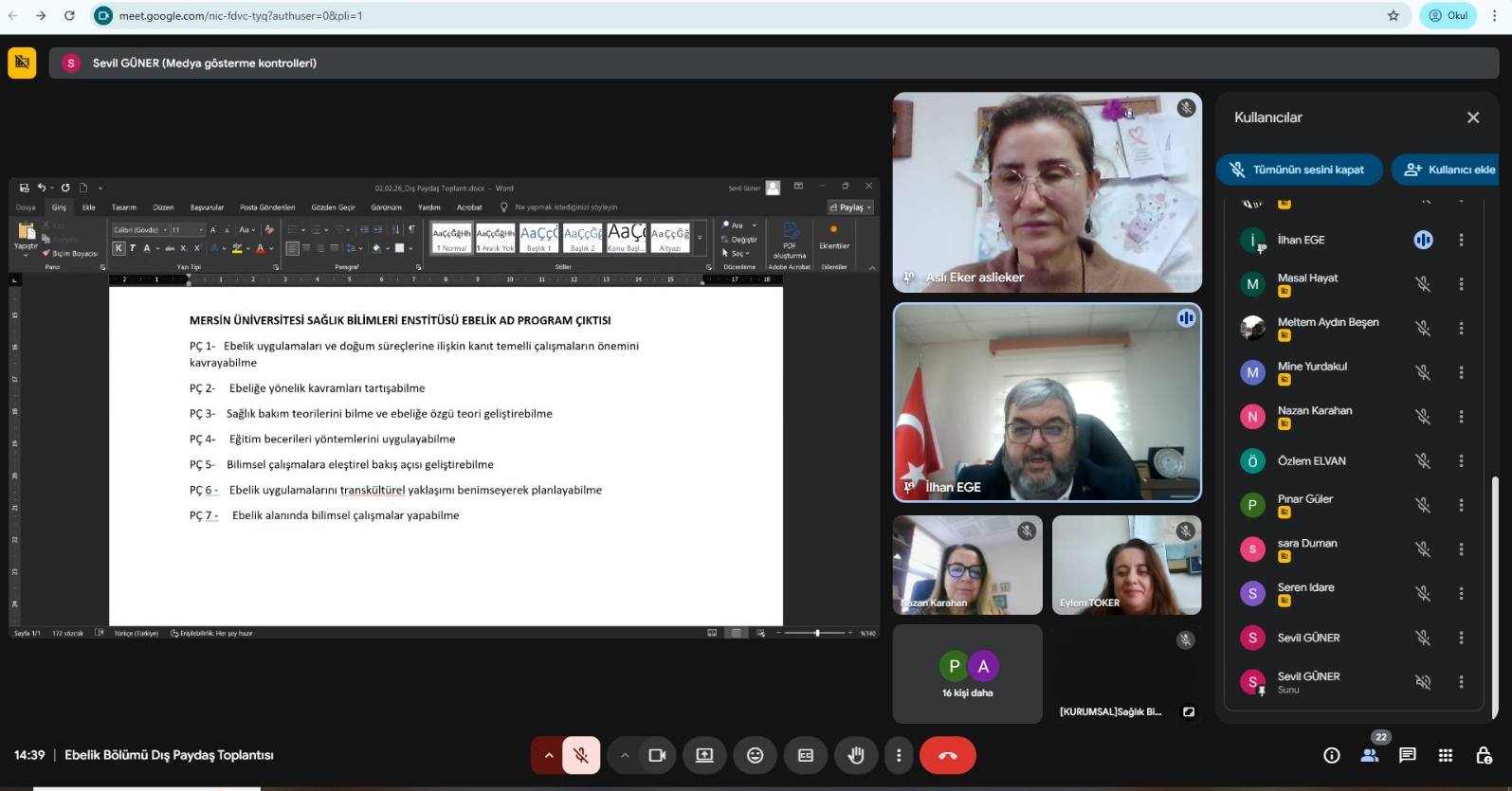 Sağlık Bilimleri Fakültesi Ebelik Bölümü tarafından dış paydaş toplantısı gerçekleştirildi. 2 Şubat 2026 tarihinde saat 14.00’te çevrim içi olarak düzenlenen toplantıya, Sağlık Bilimleri Fakültesi Dekanı Prof. Dr. İlhan Ege, Ebelik Bölümü Başkanı Dr. Öğr. Üyesi Aslı Eker, bölüm öğretim üyeleri ile sağlık alanında faaliyet gösteren dış paydaş temsilcileri katıldı.