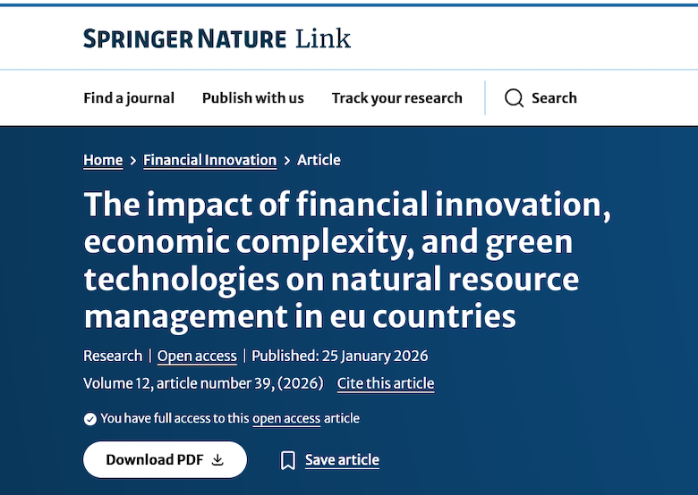 Avrupa Birliği ülkelerinde ekonomik karmaşıklık, finansal inovasyon, döngüsel ekonomi ve yeşil teknolojilerin doğal kaynak yönetimi üzerindeki etkisini mercek altına alan çalışma, politika yapıcılara önemli veriler sunuyor. Araştırma sonuçları, teknolojik ilerlemenin potansiyel "geri tepme" etkilerinden kaçınmak ve sürdürülebilir kalkınma hedeflerine ulaşmak için etkileşimli politikaların hayata geçirilmesi gerektiğini bilimsel verilerle ortaya koydu.