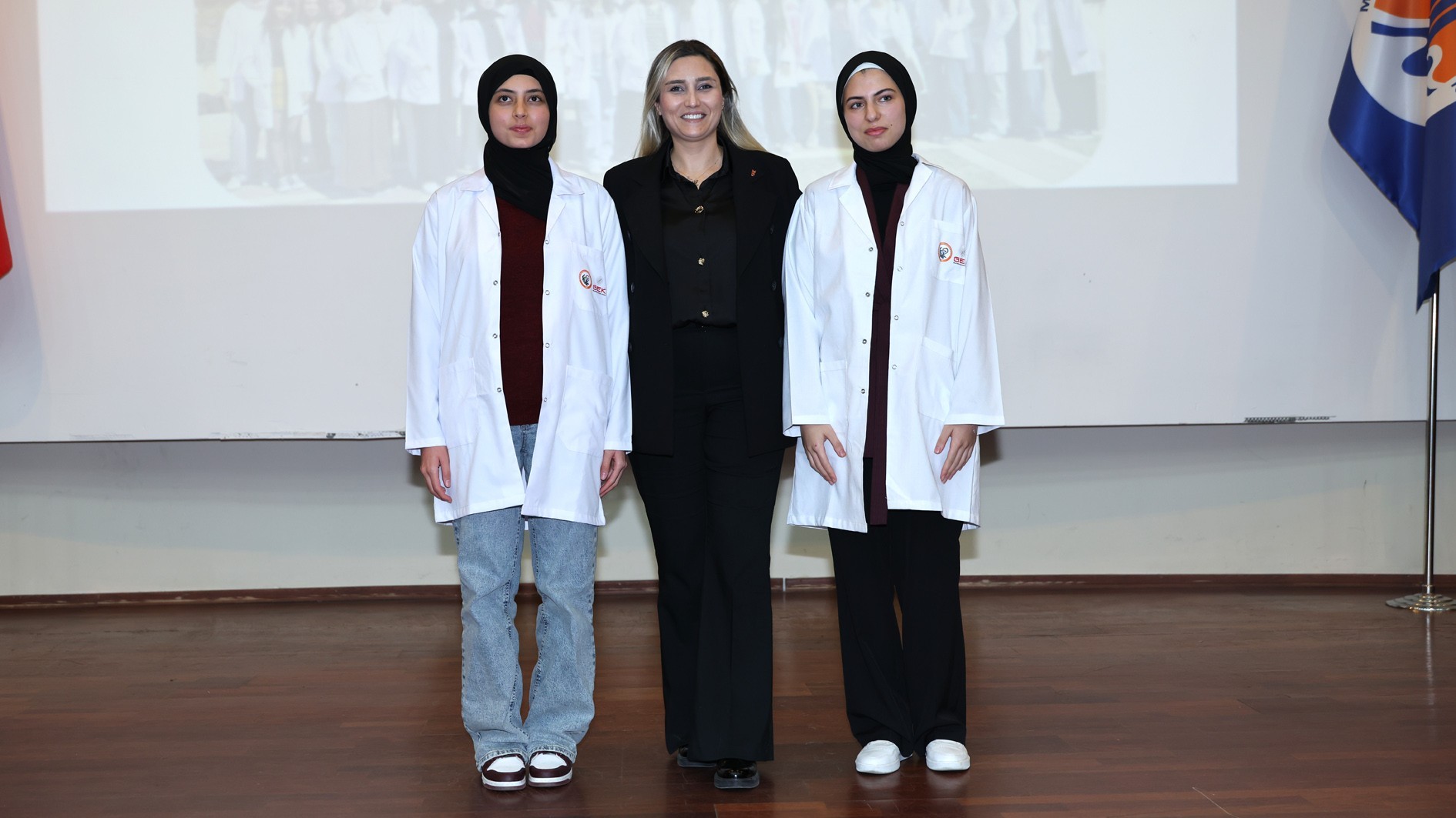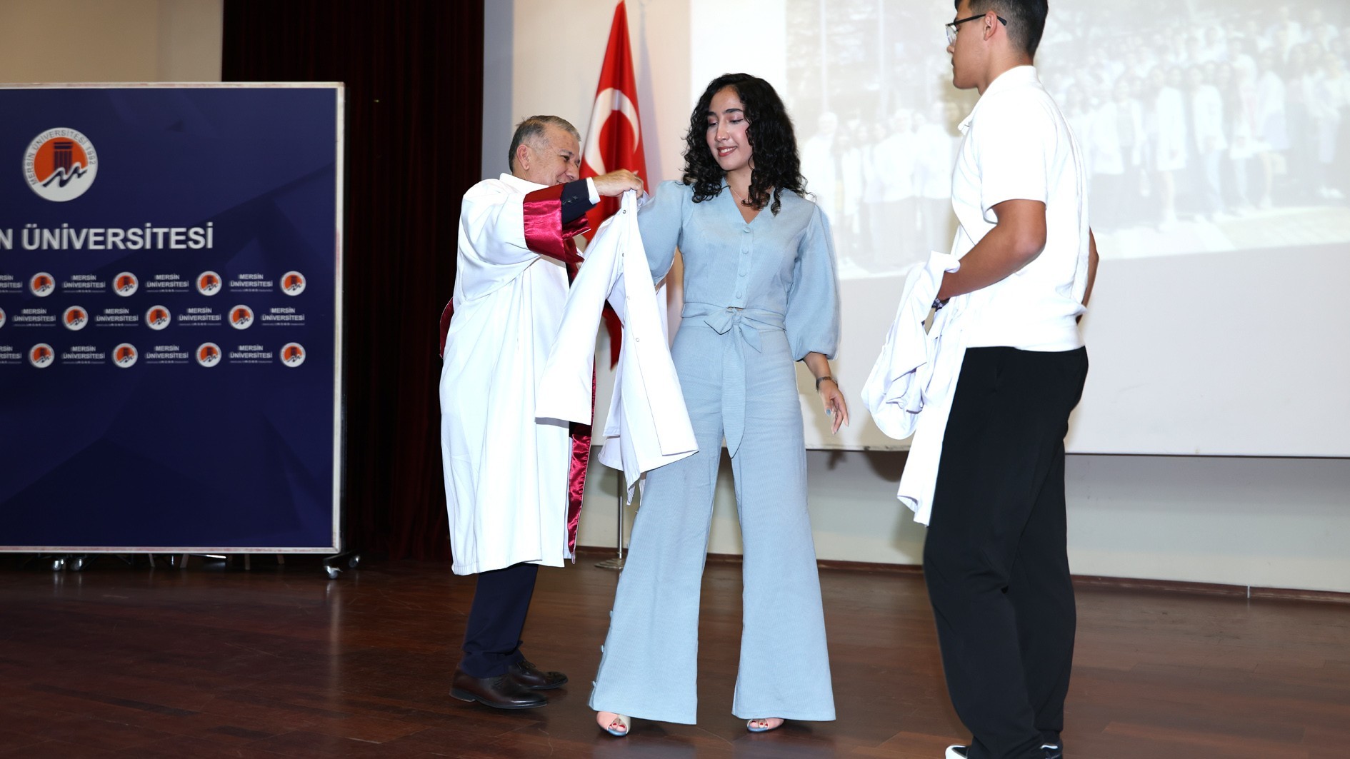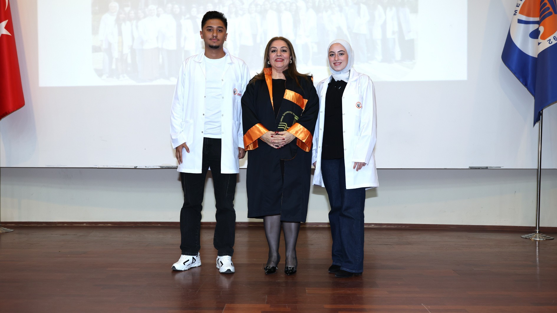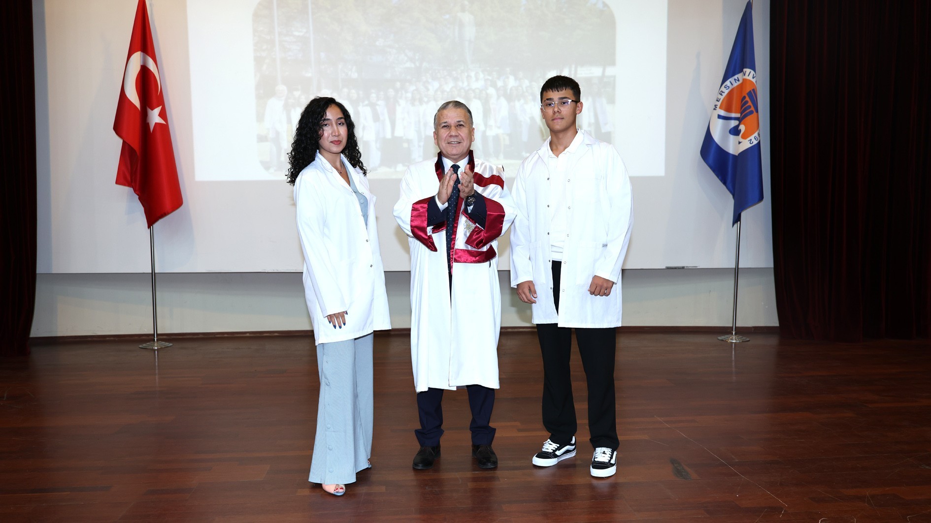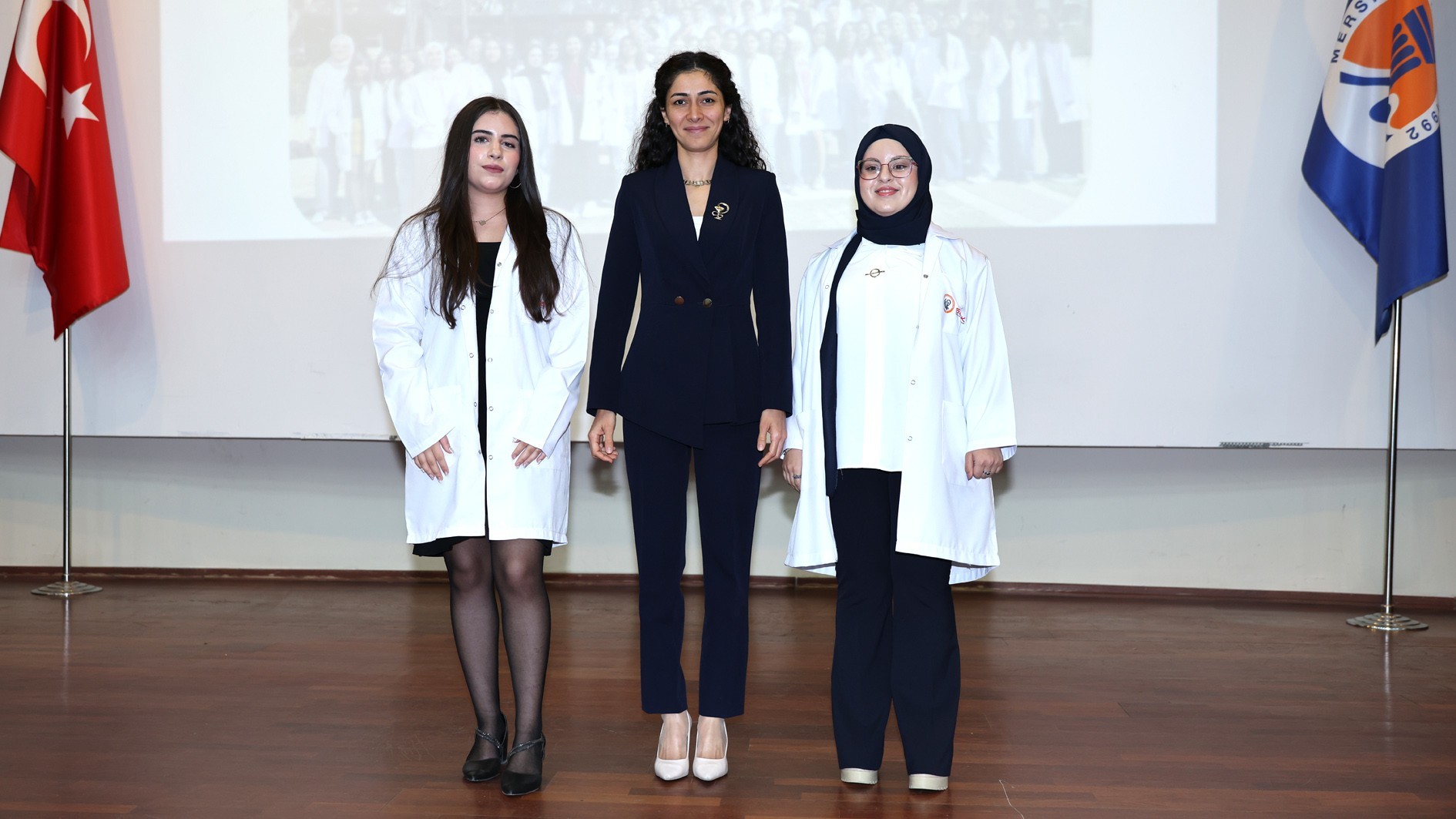 Konuşmaların ardından protokol üyeleri, akademik personel ve mezunlar tarafından öğrencilere beyaz önlükleri giydirildi. Tören, toplu fotoğraf çekimiyle sona erdi.