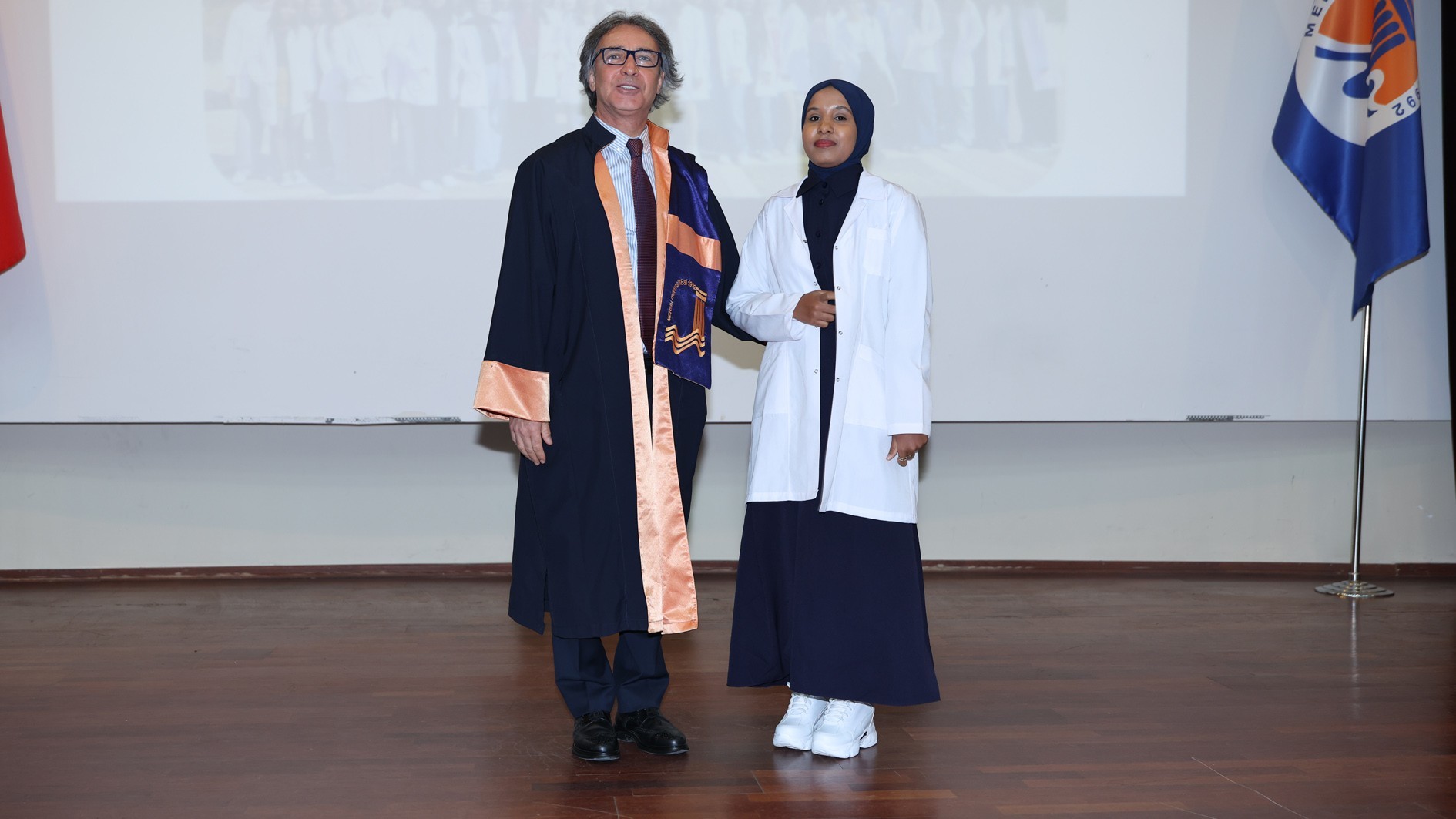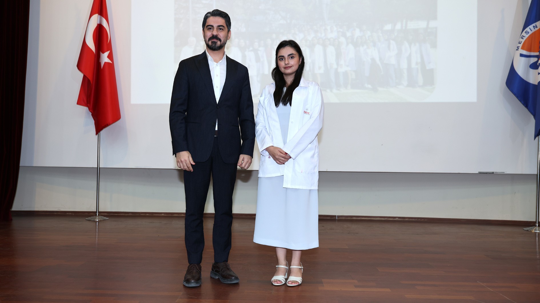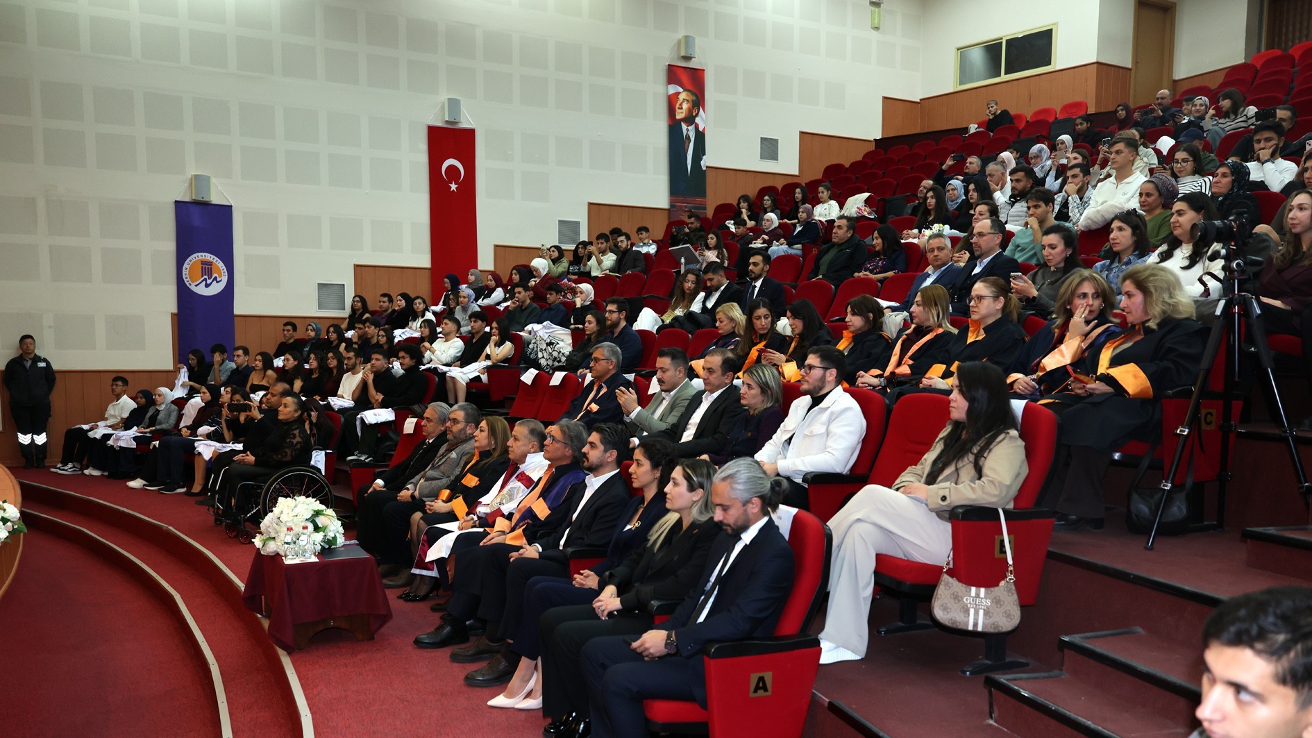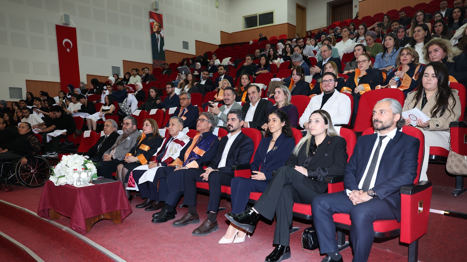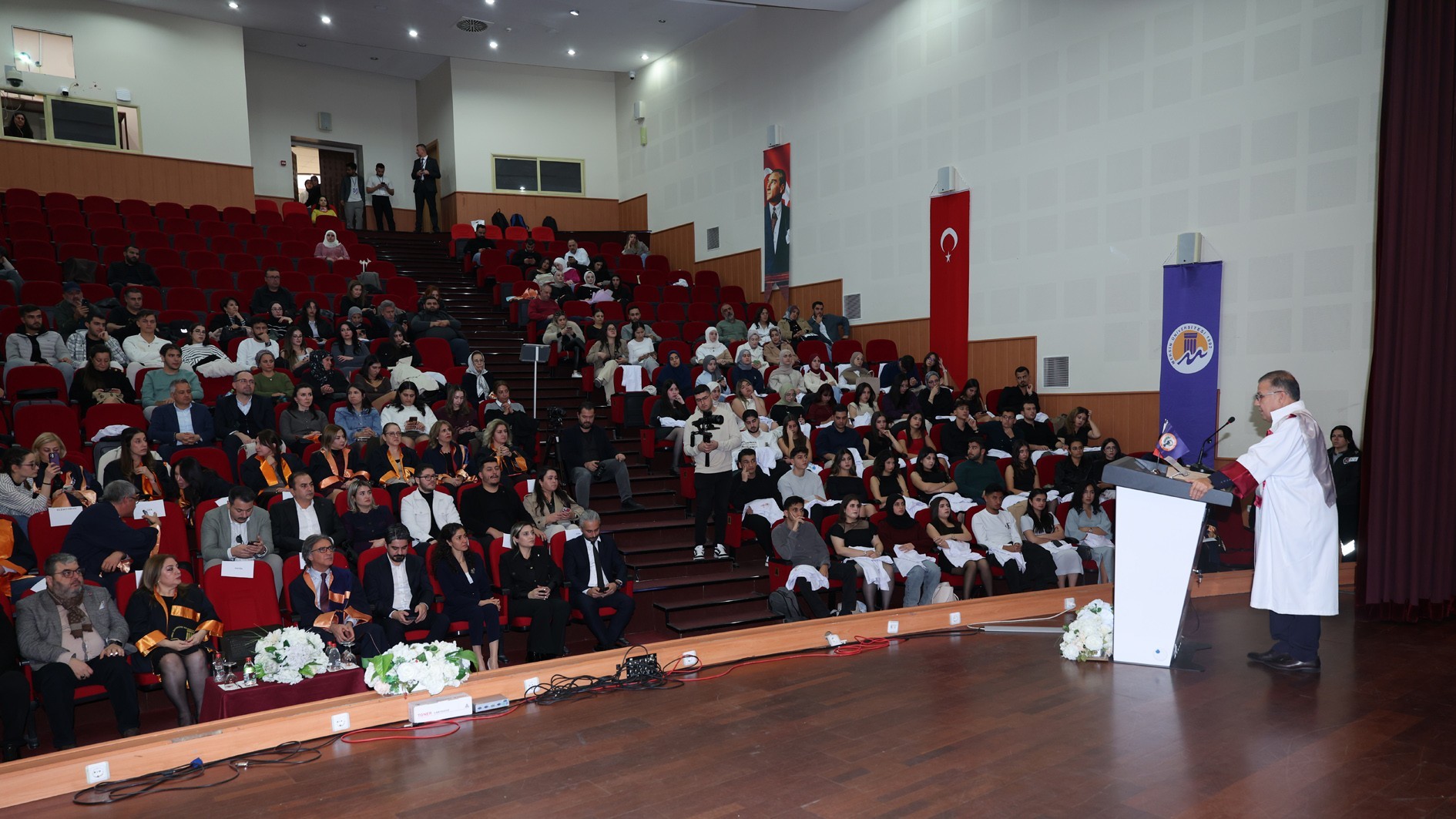 Konuşmaların ardından protokol üyeleri, akademik personel ve mezunlar tarafından öğrencilere beyaz önlükleri giydirildi. Tören, toplu fotoğraf çekimiyle sona erdi.