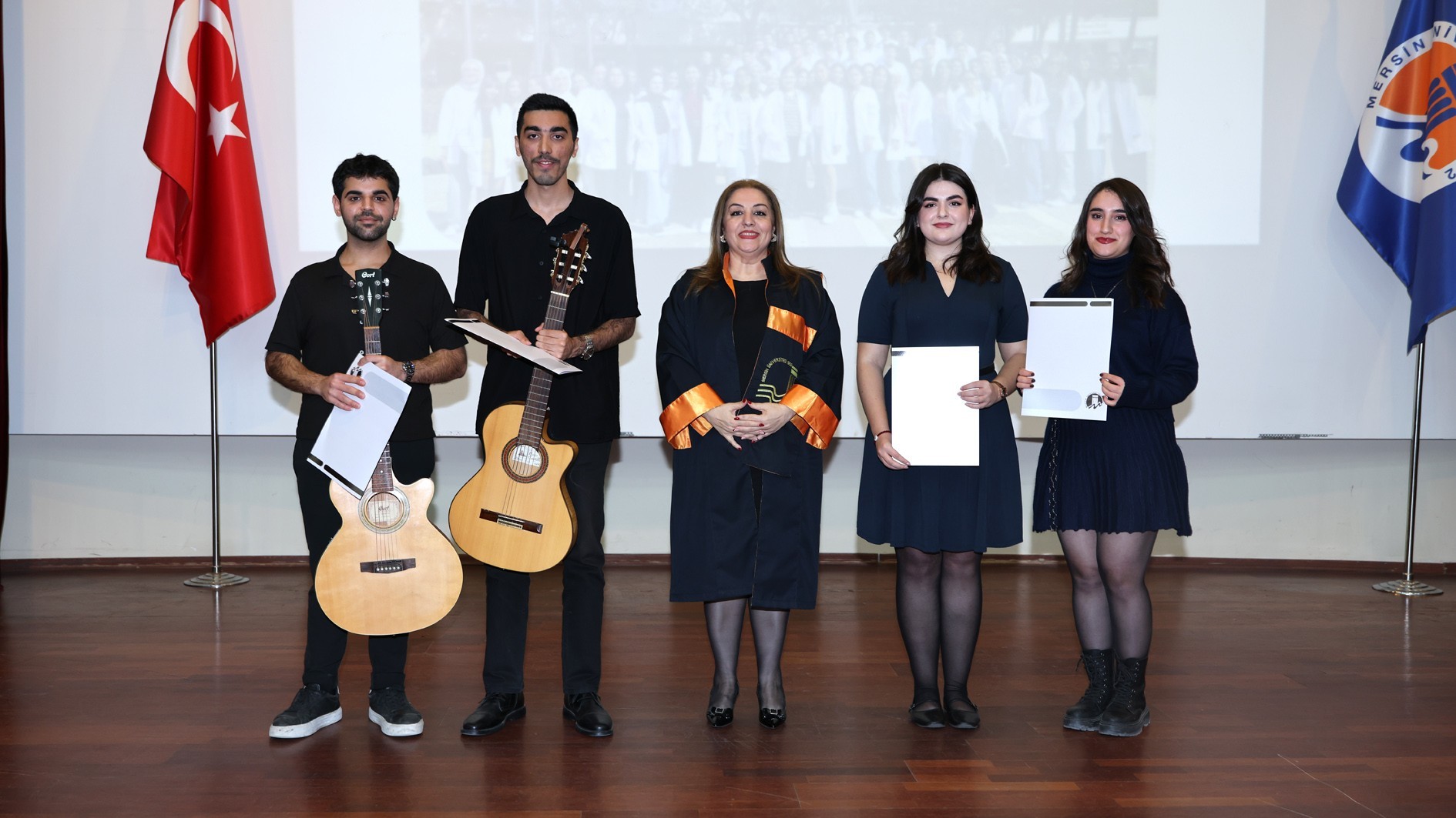 Fakültemiz öğrencilerinden Zelal ÇİÇEK, Alper EKENEL, Mehraneh KARİMİ ve Aryan SADEGHİ tarafından gerçekleştirilen müzik dinletisinin ardından, kendilerine Fakültemiz Dekanı Prof. Dr. Necmiye CANACANKATAN tarafından teşekkür belgesi takdim edildi. Daha sonra birinci sınıf öğrencilerinin fotoğraflarından oluşan slayt gösterisi izlendi.
