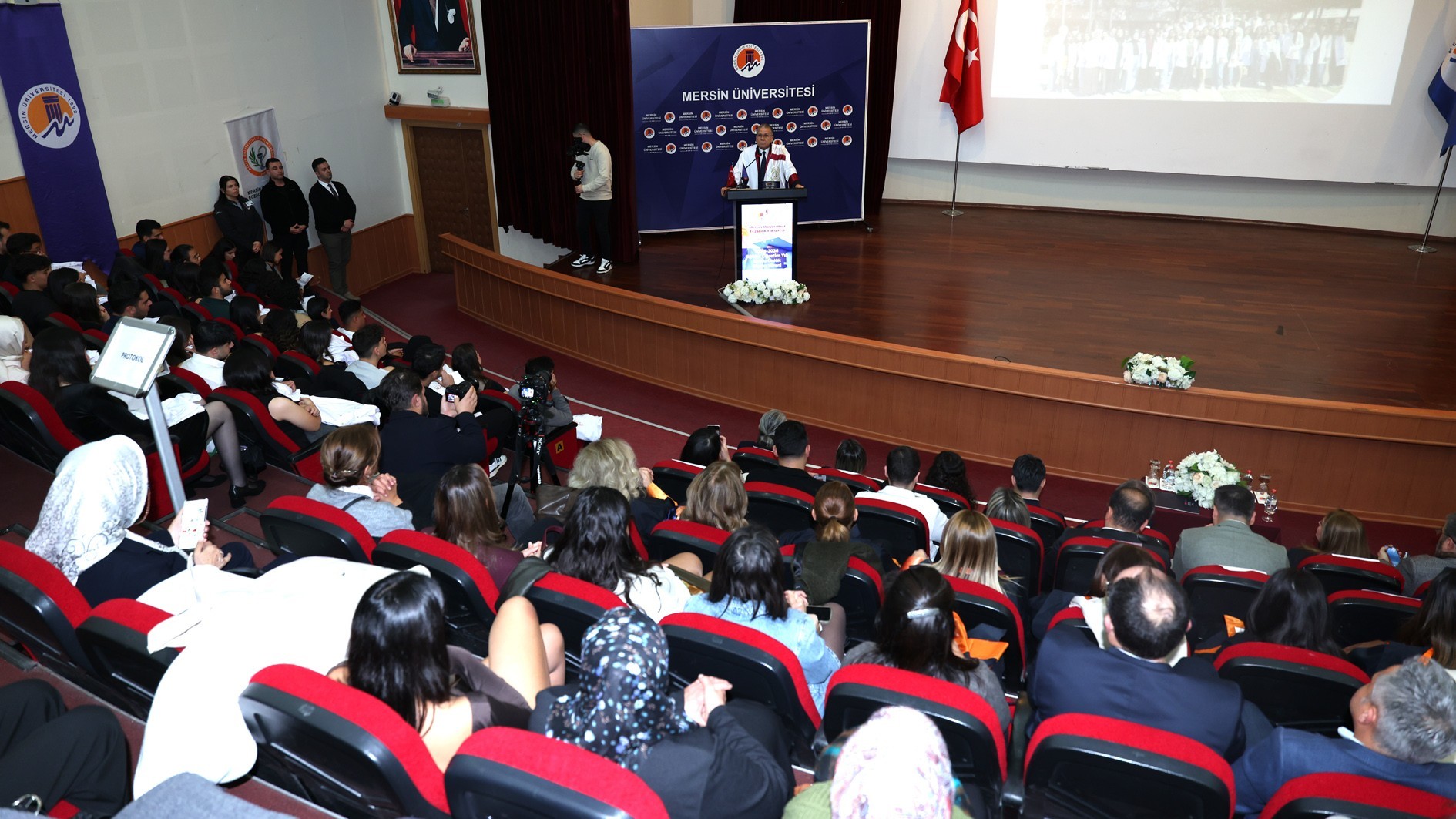 Açış konuşmasını yapan Rektörümüz Prof. Dr. Erol YAŞAR, “Mersin Üniversitesi, 30 yılı aşkın tecrübesiyle sadece bölgemizin değil, ülkemizin de en köklü ve saygın bilim yuvalarından biridir. Bugün beyaz önlüklerini giyecek olan gençlerimiz, sadece bir üniversiteye değil; büyük ve güçlü bir aileye katılıyorlar. Eczacılık Fakültemiz; uluslararası düzeyde yetkin akademik kadrosu, sürekli yenilenen eğitim modeli ve tam akreditasyona sahip olmasıyla Üniversitemizin parlayan yıldızlarından biridir. Önümüzdeki kısa süre içinde inşasına başlamayı planladığımız yeni fakülte binasıyla da fakültemizin eğitim-öğretim kalitesini çok daha ileri bir seviyeye taşıyacağız.” dedi.