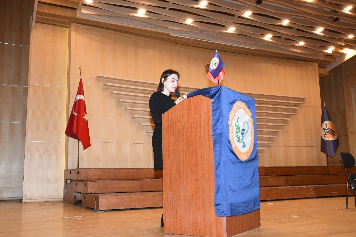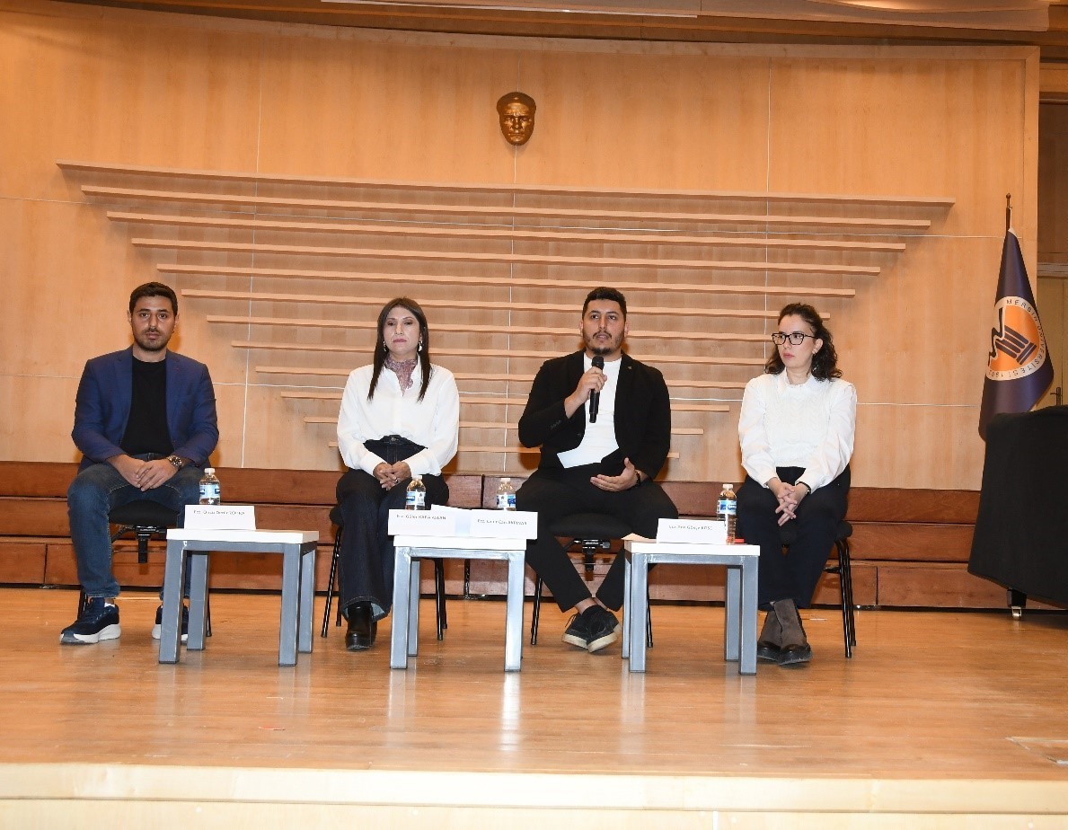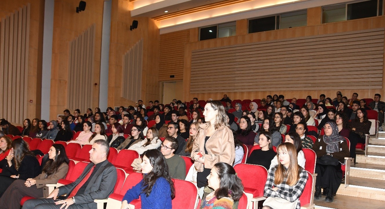Üniversitemiz Yenişehir Kampüsü Nevit Kodallı Konferans Salonu’nda düzenlenen etkinliğe; Fakültemiz Dekanı Necmiye CANACANKATAN, Dekan Yardımcıları Doç. Dr. Mahmut ÜLGER ve Dr. Öğr. Üyesi Şerife Efsun ANTMEN, Fakültemiz öğretim elemanları, Fakülte Sekreterimiz Volkan DARÇIN, idari personel ve çok sayıda öğrencimiz katılım sağladı.