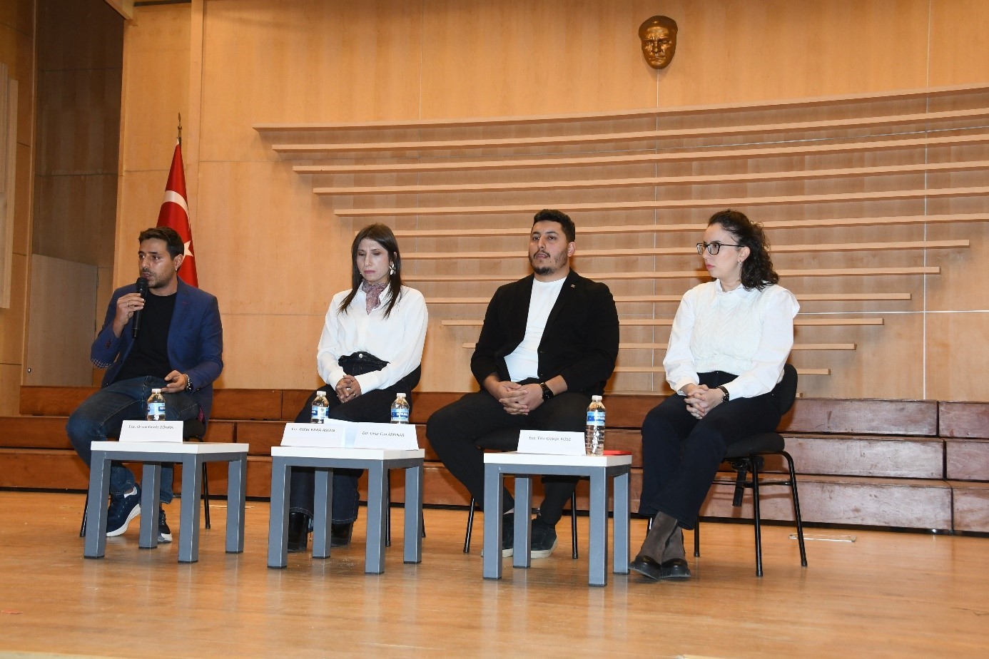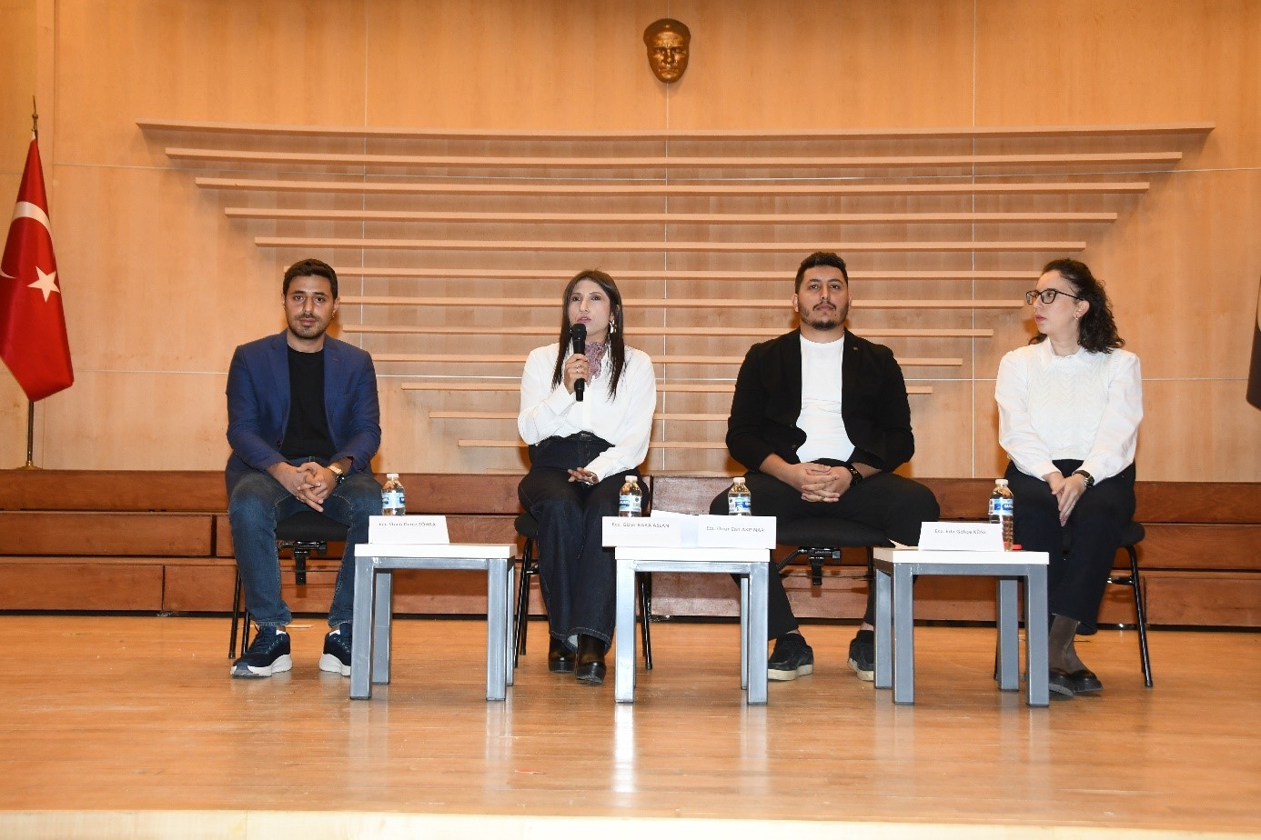 Saygı duruşu ve İstiklal Marşı’nın okunmasının ardından başlayan programda, Fakültemiz mezunları Ecz. Öncü Deniz ZÖHRA, Ecz. Güler KARA ASLAN, Ecz. Onur Can AKPINAR ve Ecz. Eda Gökçe KÖSE konuşmacı olarak yer aldı. Konuşmacılar, öğrencilik dönemlerinden meslek hayatlarına uzanan kariyer yolculuklarını paylaşarak, eczacılık mesleğinin farklı çalışma alanlarına ilişkin deneyimlerini aktardı.