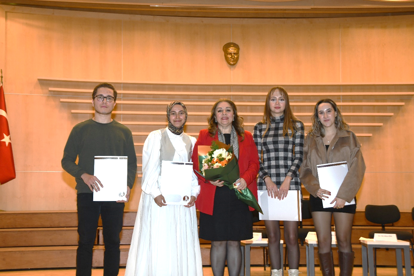 Etkinlik, Fakültemiz Dekanı Prof. Dr. Necmiye CANACANKATAN tarafından konuşmacılara teşekkür plaketi takdim edilmesinin ardından gerçekleştirilen toplu fotoğraf çekimi ile sona erdi.