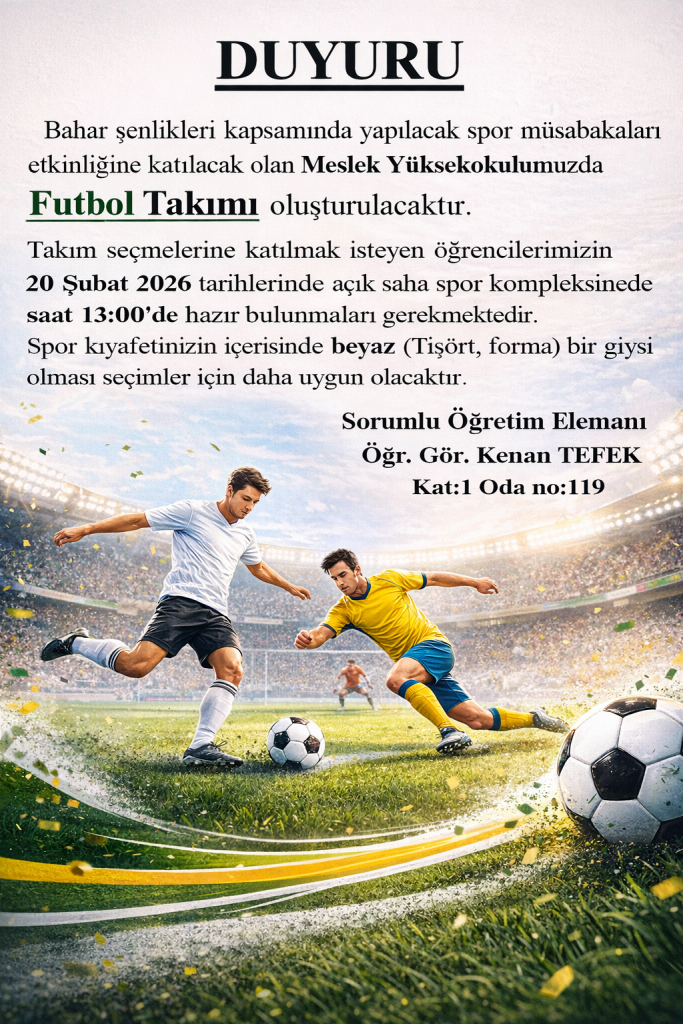 Meslek Yüksekokul Öğrenci Futbol Takımı Seçmesi