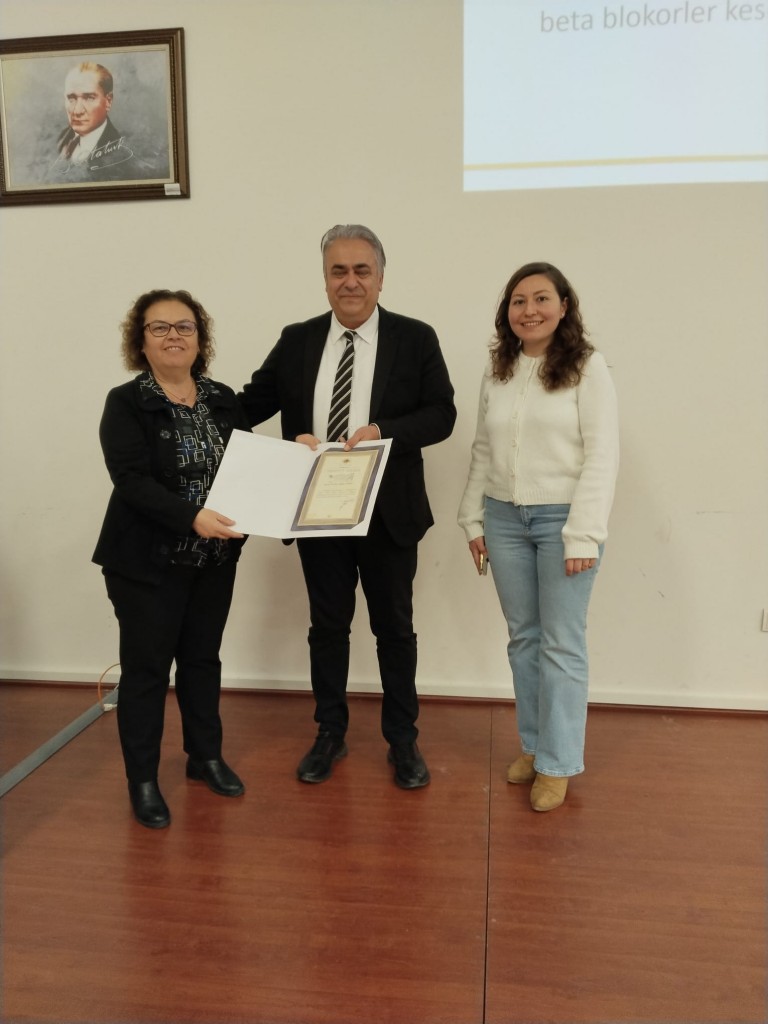 Programın sonunda, Tıp Fakültesi Dekanlığı adına Dekan Yardımcısı Prof. Dr. İbrahim Başhan tarafından Prof. Dr. Gülçin Yapıcı’ya katkılarından dolayı teşekkür belgesi takdim edildi.