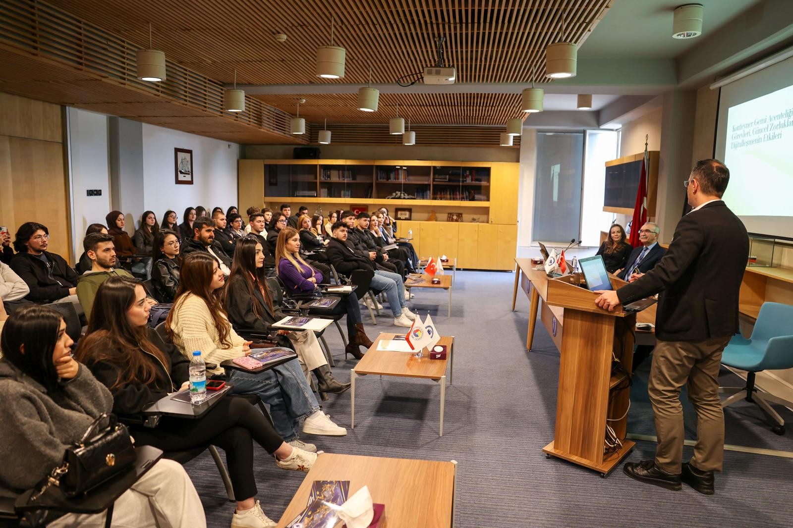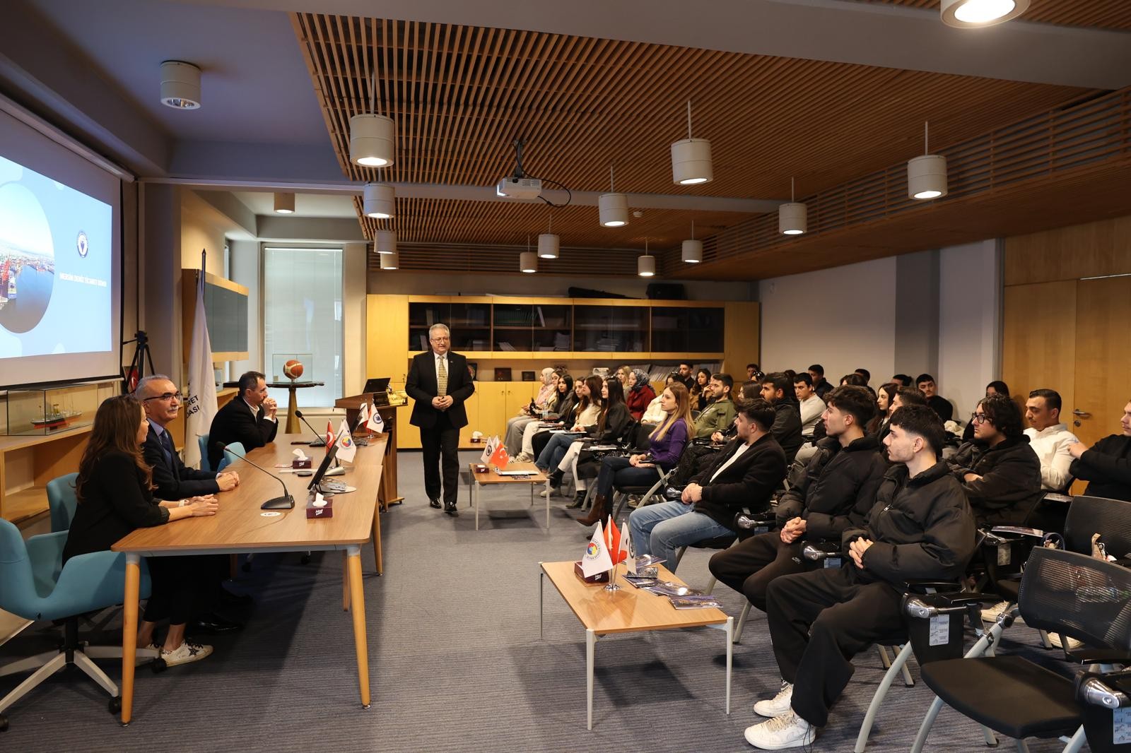 Eğitimin başlangıç kısmında Mersin Deniz Ticaret Odası genel sekreteri Fuat Gedik Odanın kuruluş ve faaliyetleri hakkında öğrencilere bilgi verdi. Daha sonra ise Deniz Ticaret Odası yönetim kurulu üyesi ve MSC Gemi Acenteliği Mersin Bölge Müdürü Uğur Tosuner gemi acenteliği konusunda kapsamlı bir mesleki bilgilendirme ve deneyimlerini aktardı.