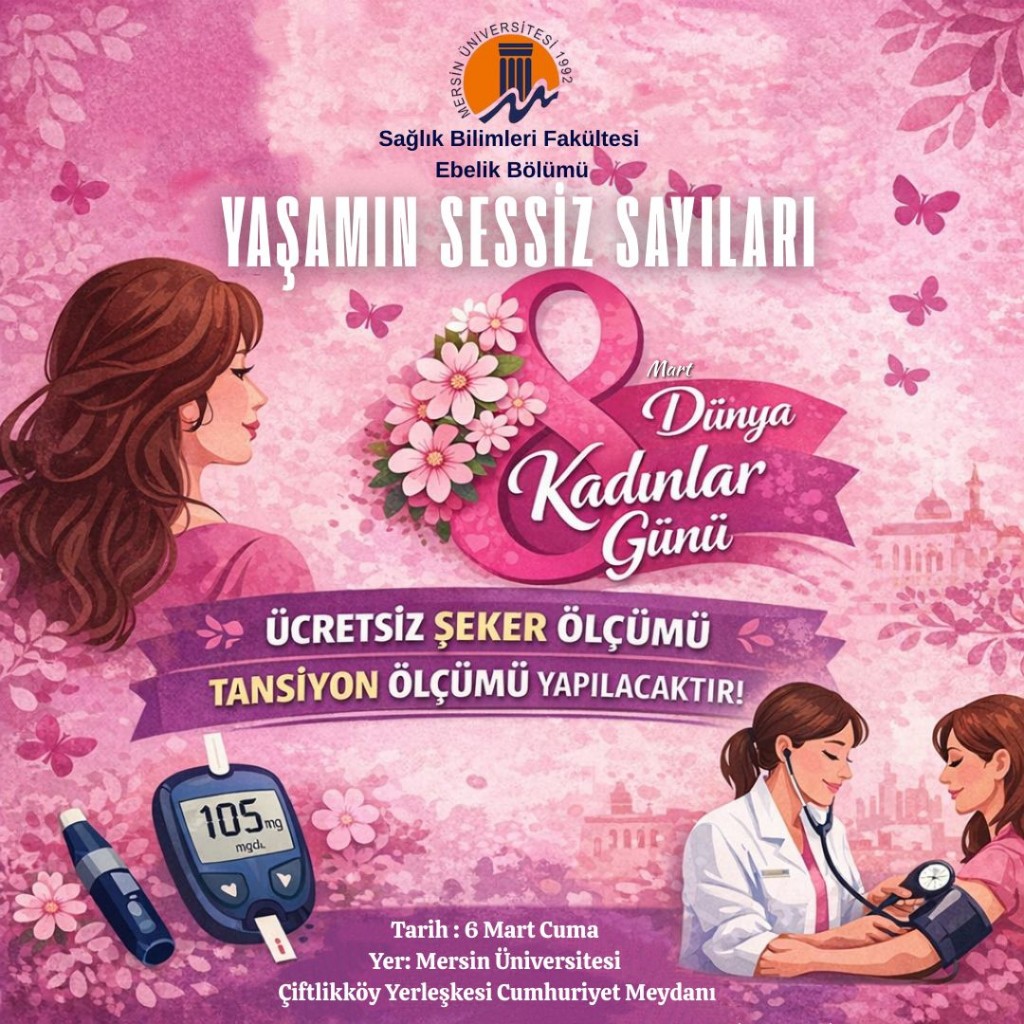 Mersin Üniversitesi Sağlık Bilimleri Fakültesi Ebelik Bölümü tarafından, 8 Mart Dünya Kadınlar Günü kapsamında “Yaşamın Sessiz Sayıları” etkinliği düzenlenecektir.
