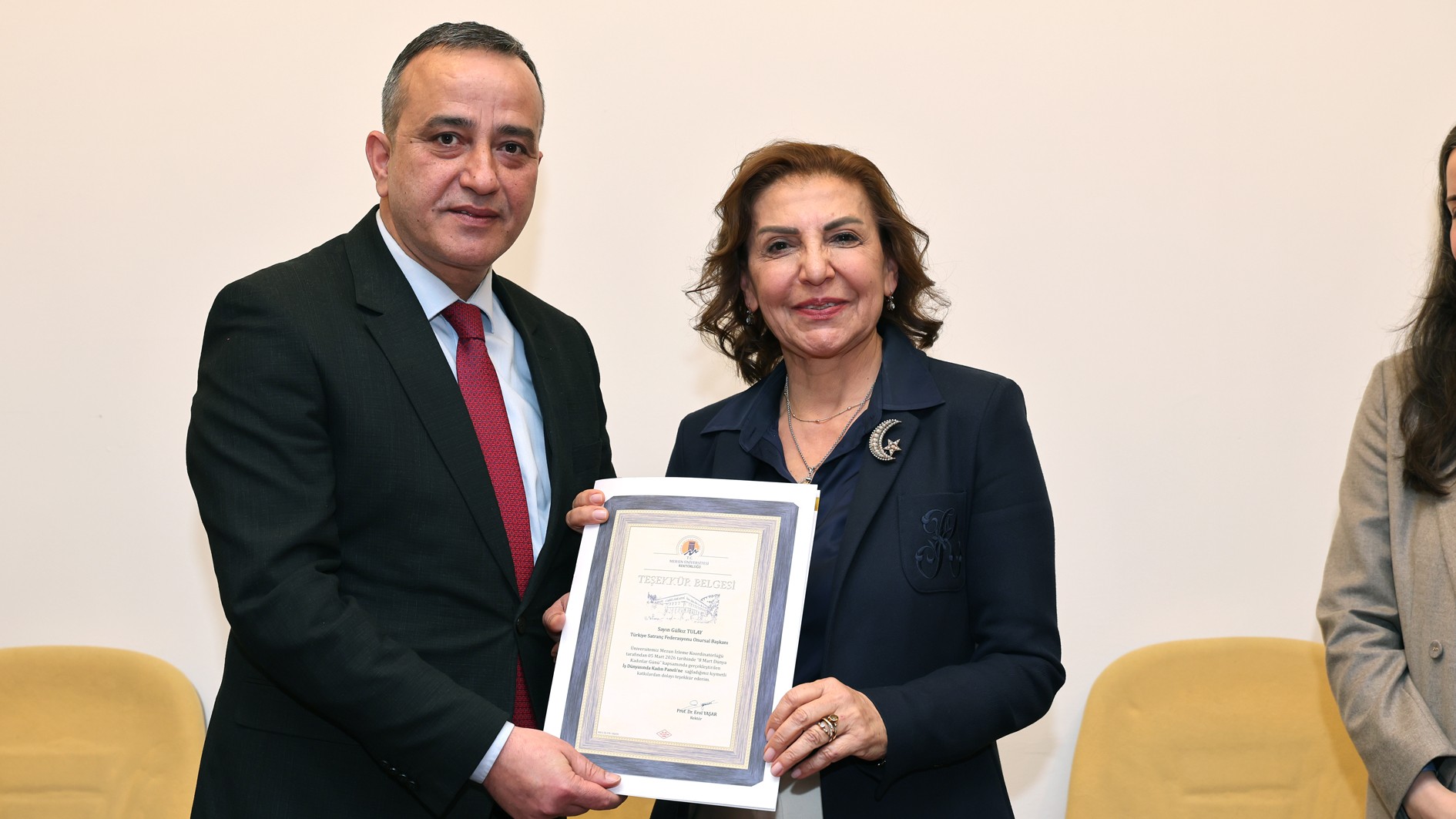 İş insanı ve spor yöneticisi Gülkız Tulay ise ilk ve tek kadın federasyon başkanı olarak verdiği mücadeleyle kadının bu alandaki varlığını ispatladığını dile getirdi. Azim ve kararlılıkla yürüdüğü yolda onursal başkanlığa kadar uzanan sürecini anlatan Tulay, gençlere; “Hayallerinizin ve hedeflerinizin arkasından cesaretle koşmalısınız. Kendinize inandığınızda aşamayacağınız hiçbir engel yoktur.” mesajını verdi.