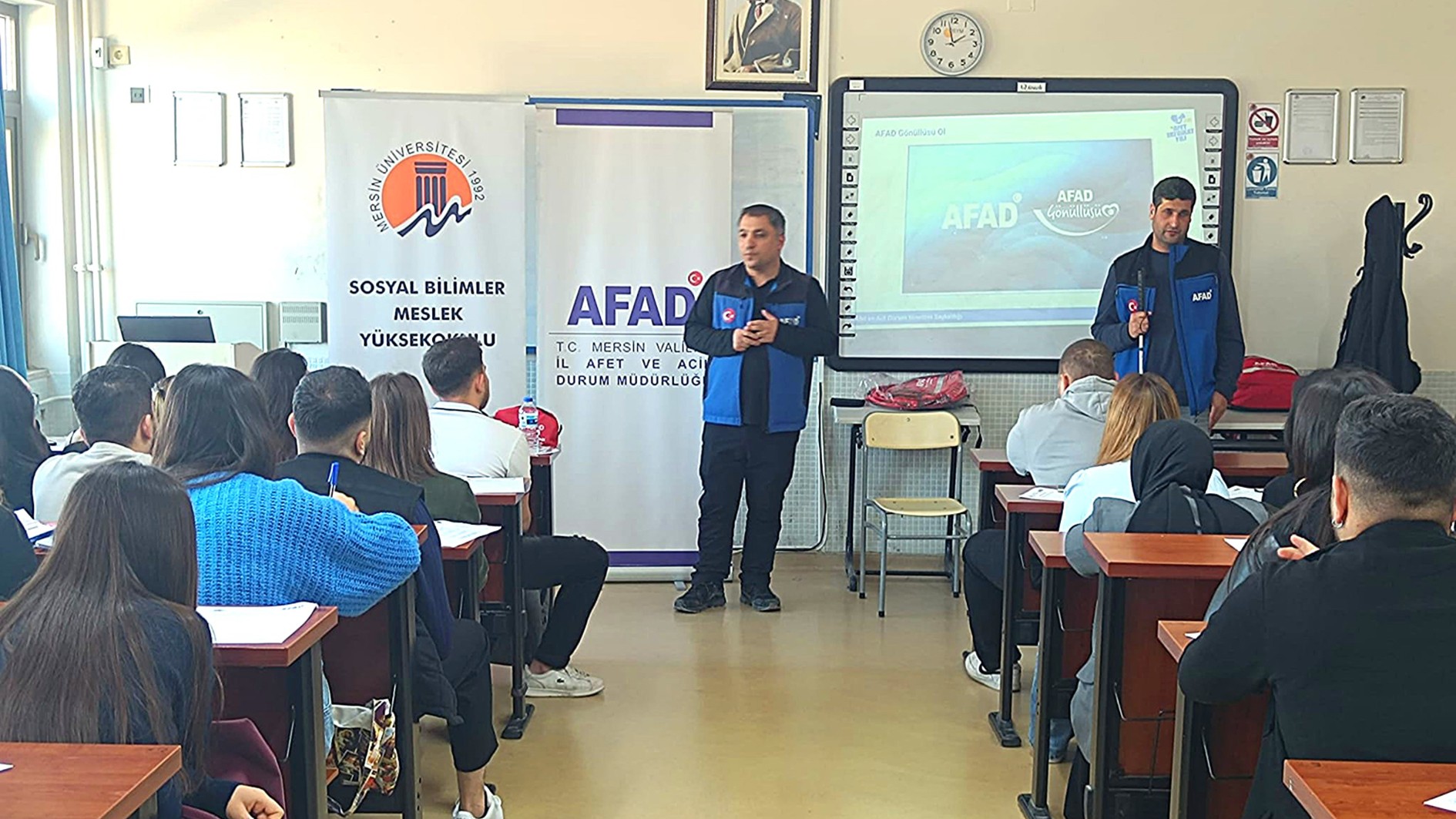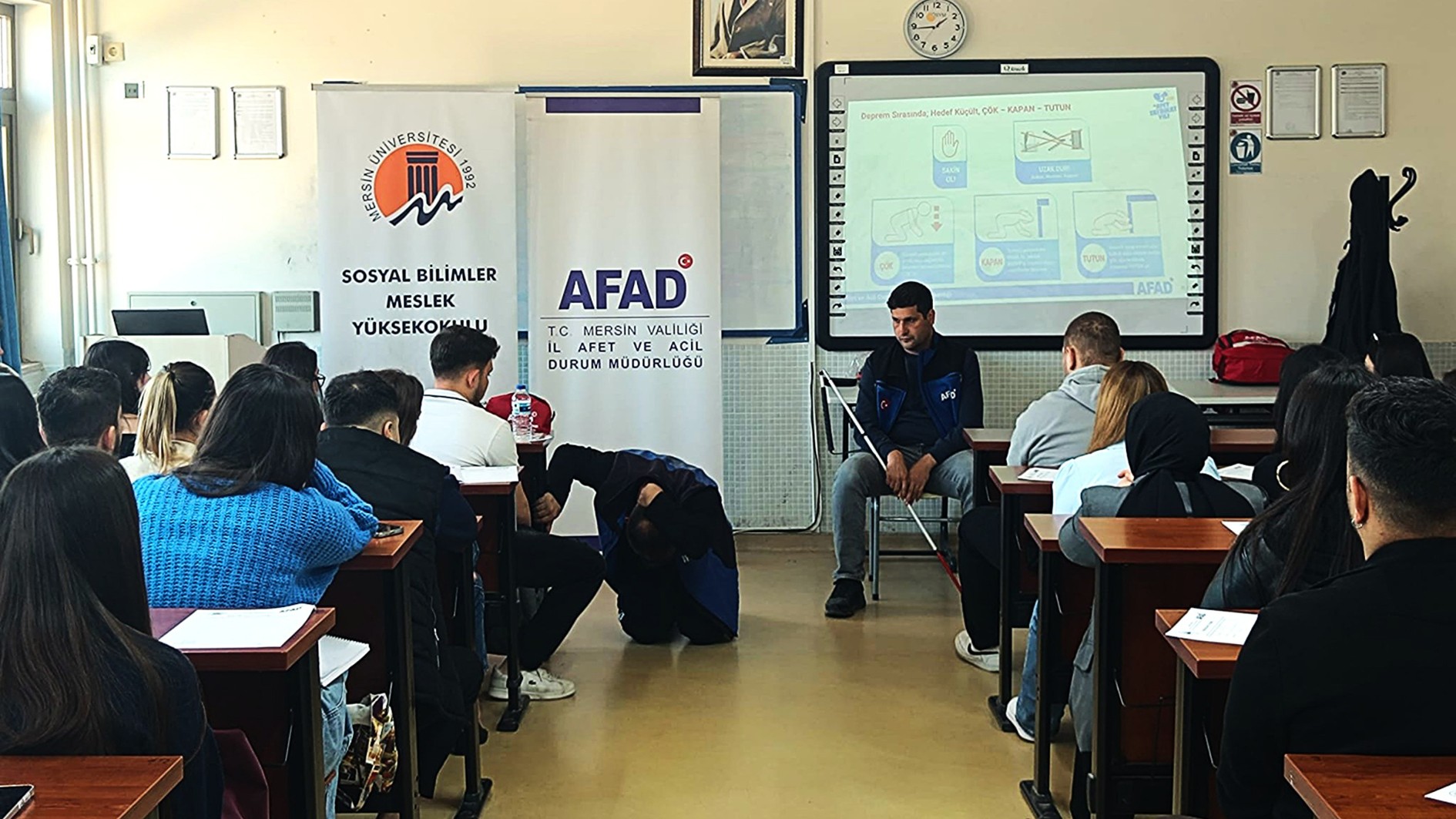 Mersin İl Afet ve Acil Durum Müdürlüğü tarafından “Deprem Haftası Etkinlikleri” kapsamında 4 Mart Çarşamba günü Üniversitemiz Sosyal Bilimler Meslek Yüksekokulu öğrencilerine yönelik afet farkındalık eğitimi düzenlendi.