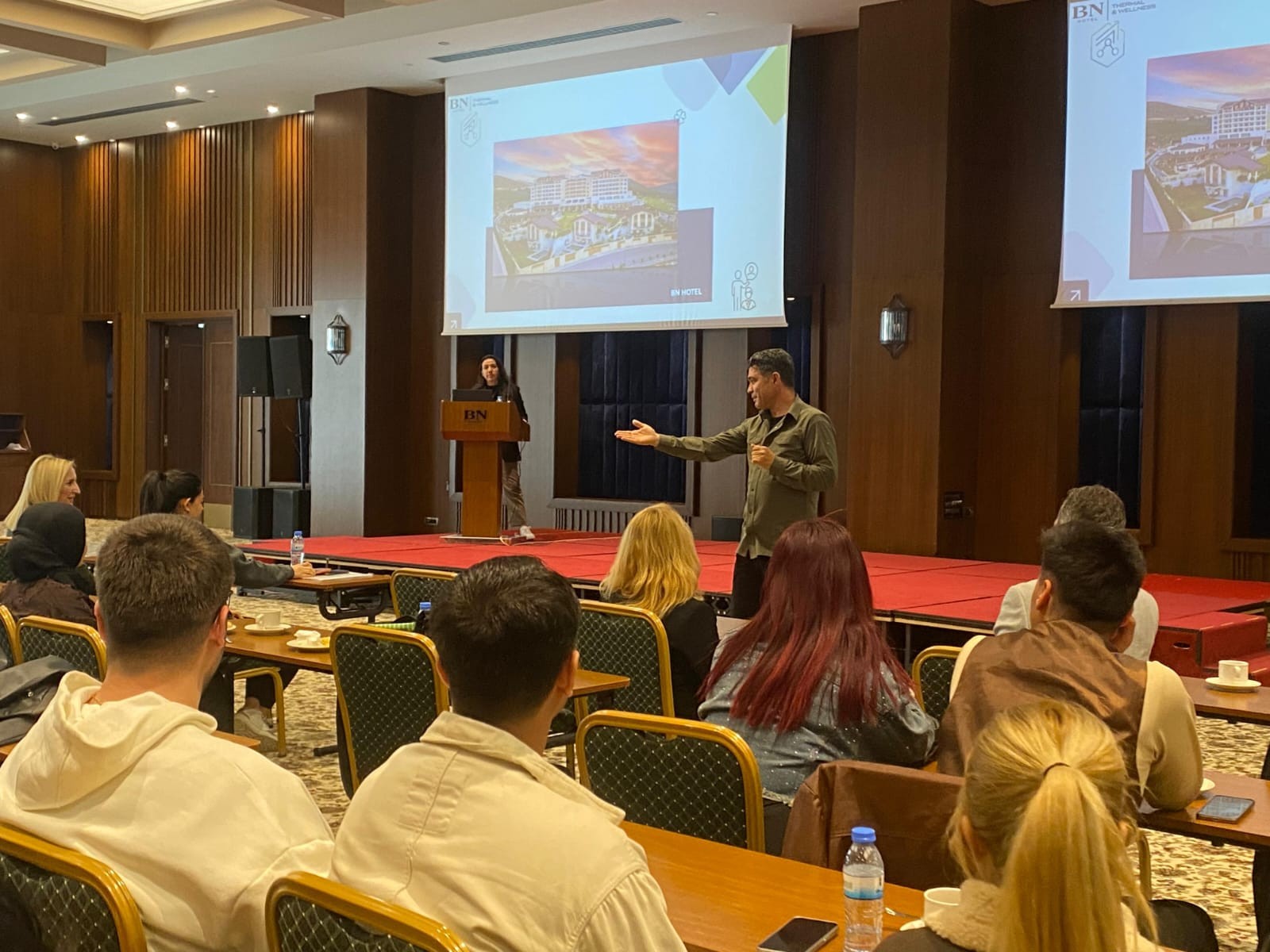 Tesis gezisinin ardından toplantı salonunda işletmeye ilişkin kurumsal tanıtım sunumu gerçekleştirildi ve öğrencilere sektördeki kariyer olanakları hakkında bilgilendirme yapıldı. Programın son bölümünde otel yöneticileri, kendi kariyer yolculuklarına ilişkin deneyimlerini paylaşarak öğrencilere mesleki gelişimlerine yönelik rehberlik edecek önemli tavsiyelerde bulundu.