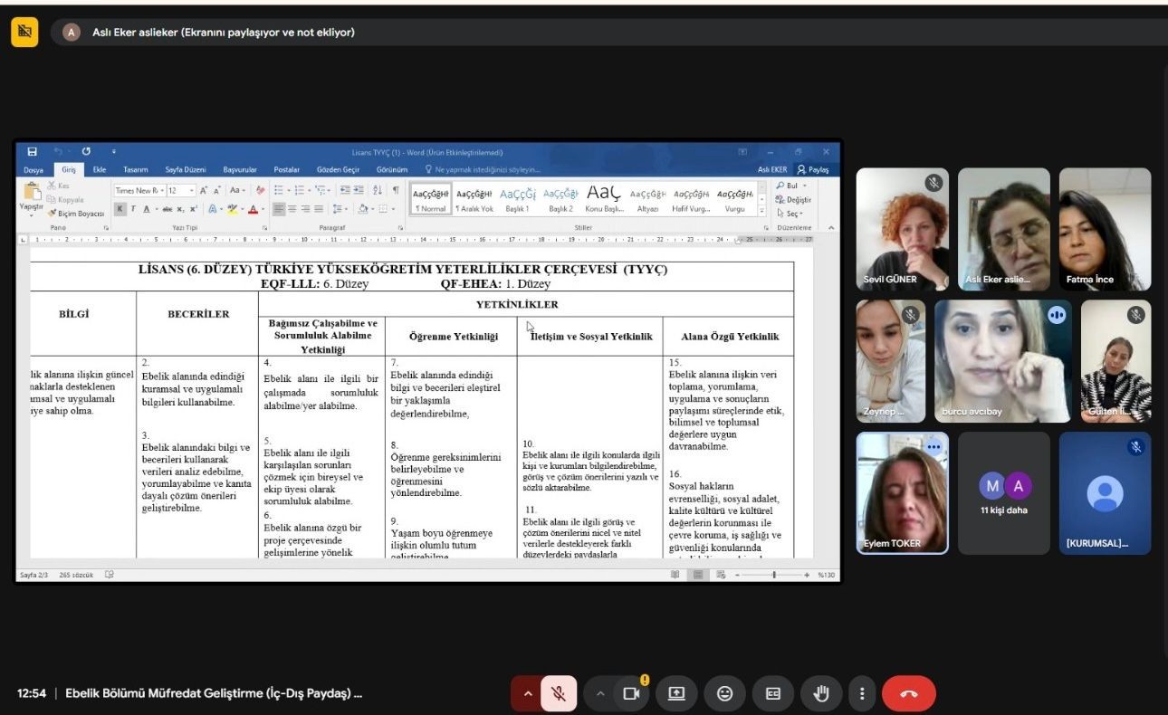Katılımcıların görüş ve önerileri doğrultusunda, programın güncel ihtiyaçlara daha uygun hale getirilmesi ve mezun yeterliliklerinin güçlendirilmesi yönünde önemli değerlendirmelerde bulunuldu. Toplantının, Ebelik Bölümü’nün eğitim-öğretim kalitesine katkı sağlaması hedefleniyor.