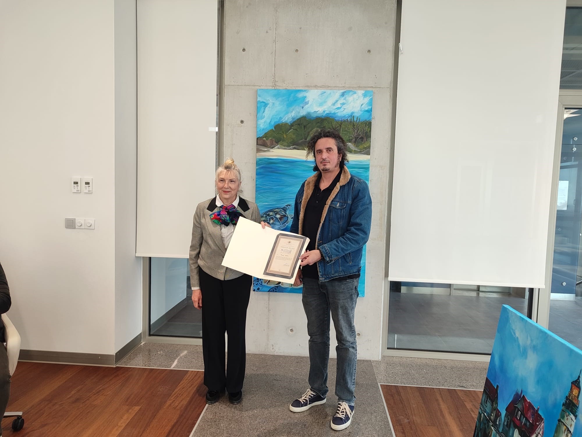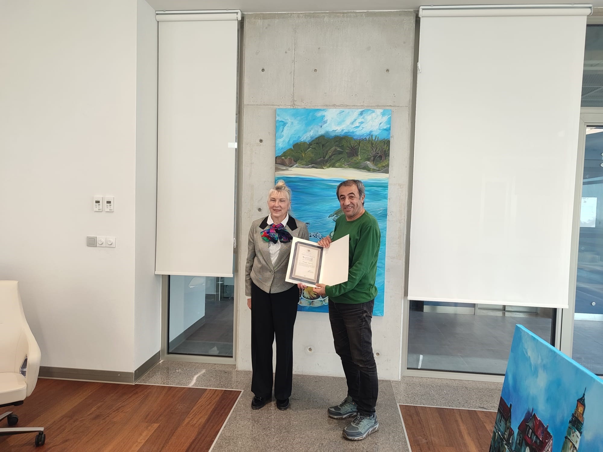 Eserlerin teslimi için gerçekleştirilen anlamlı buluşmada, sürece sundukları değerli katkılardan dolayı Güzel Sanatlar Fakültesi öğretim elemanları ve öğrencilerine Denizcilik Fakültesi Dekanı Prof. Dr. Nur Jale Ece tarafından teşekkür belgeleri takdim edildi.