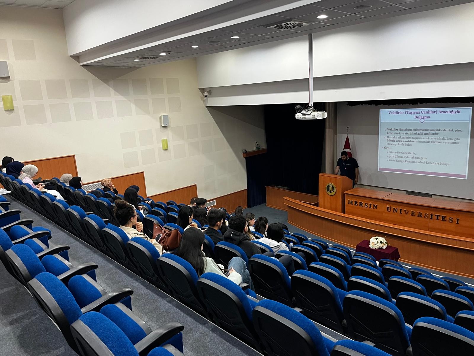 15 Nisan 2026 tarihinde, fakültemiz öğrencilerine yönelik bulaşıcı hastalıklar konusunda bilgilendirme etkinliği gerçekleştirildi. Etkinlik, Mersin İl Sağlık Müdürlüğü Halk Sağlığı Hizmetleri Başkanlığı ile Mersin Üniversitesi Tıp Fakültesi Halk Sağlığı Anabilim Dalı iş birliğinde, öğrencilerine yönelik bulaşıcı hastalıklardan korunmaya ilişkin eğitimler kapsamında düzenlendi.