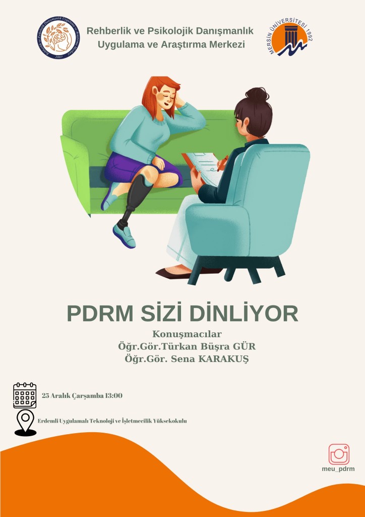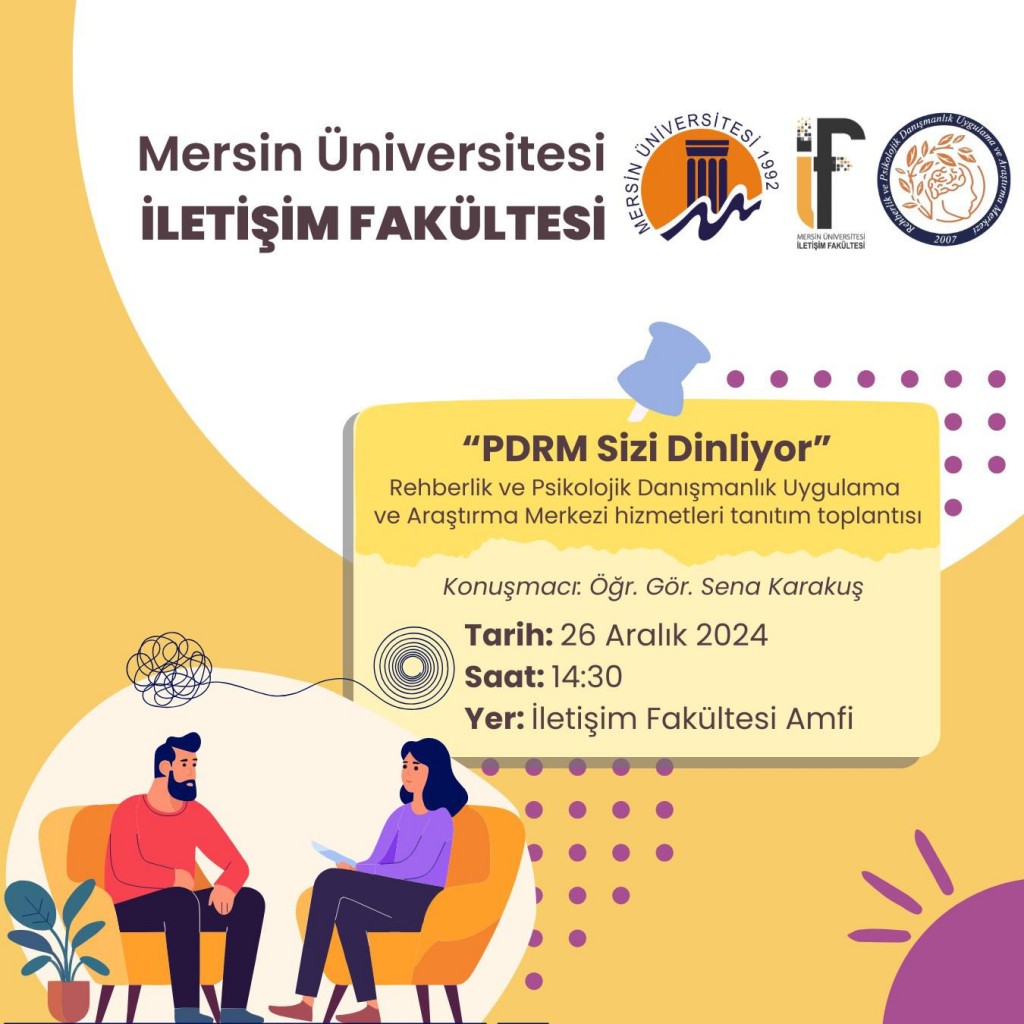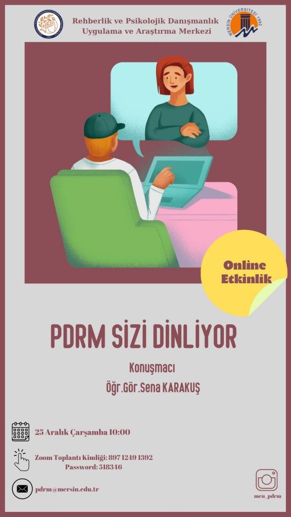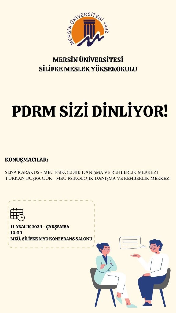 11 Aralık 2024 tarihinde Öğr. Gör. Sena Karakuş ve Öğr. Gör. Türkan Büşra Gür tarafından Silifke Meslek Yüksekokulu öğrencilerine yönelik merkez ve psikolojik danışma süreçlerinin tanıtımı gerçekleştirilecektir.