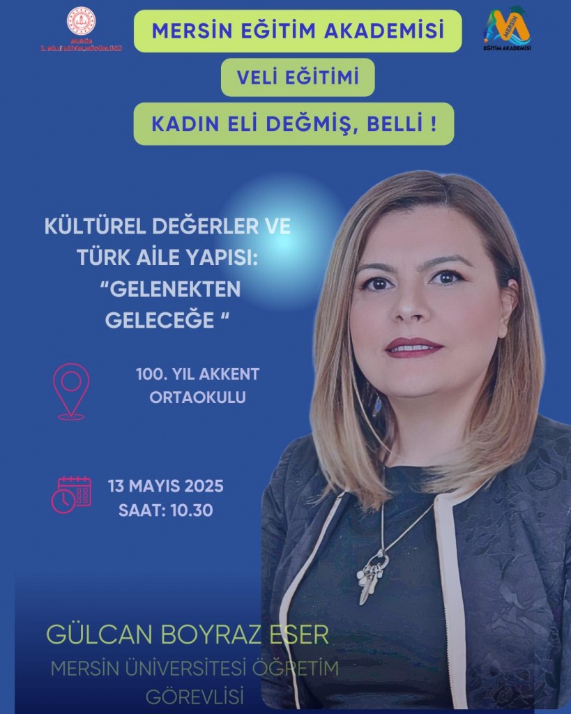 Üniversitemiz Rehberlik ve Psikolojik Danışmanlık Uygulama ve Araştırma Merkezi bünyesinde görev yapmakta olan Öğr. Gör. Gülcan Boyraz Eser Mersin İl Milli Eğitim Müdürlüğü tarafından yürütülen "Kadın Eli Değmiş, Belli! " projesi kapsamında