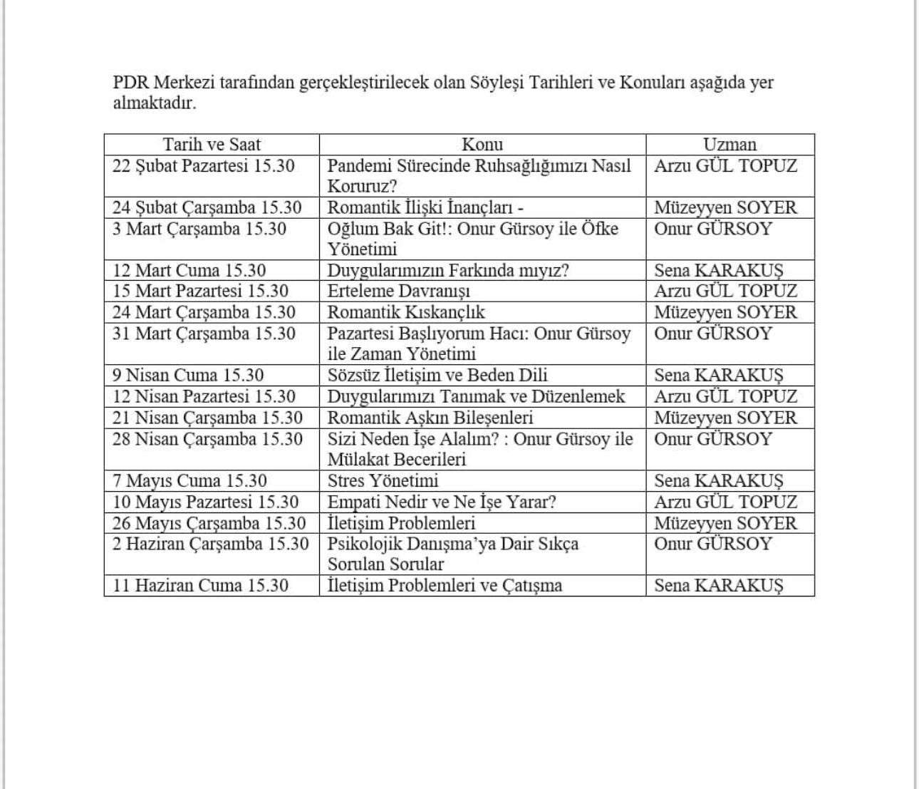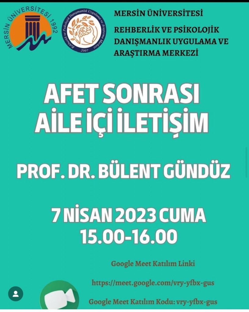 6 Şubat 2023 tarihli Kahramanmaraş merkezli deprem sonrasında üniversitemiz öğrencilerine yönelik Afet Sonrası Ruh Sağlığı seminerleri gerçekleştirilmiştir.