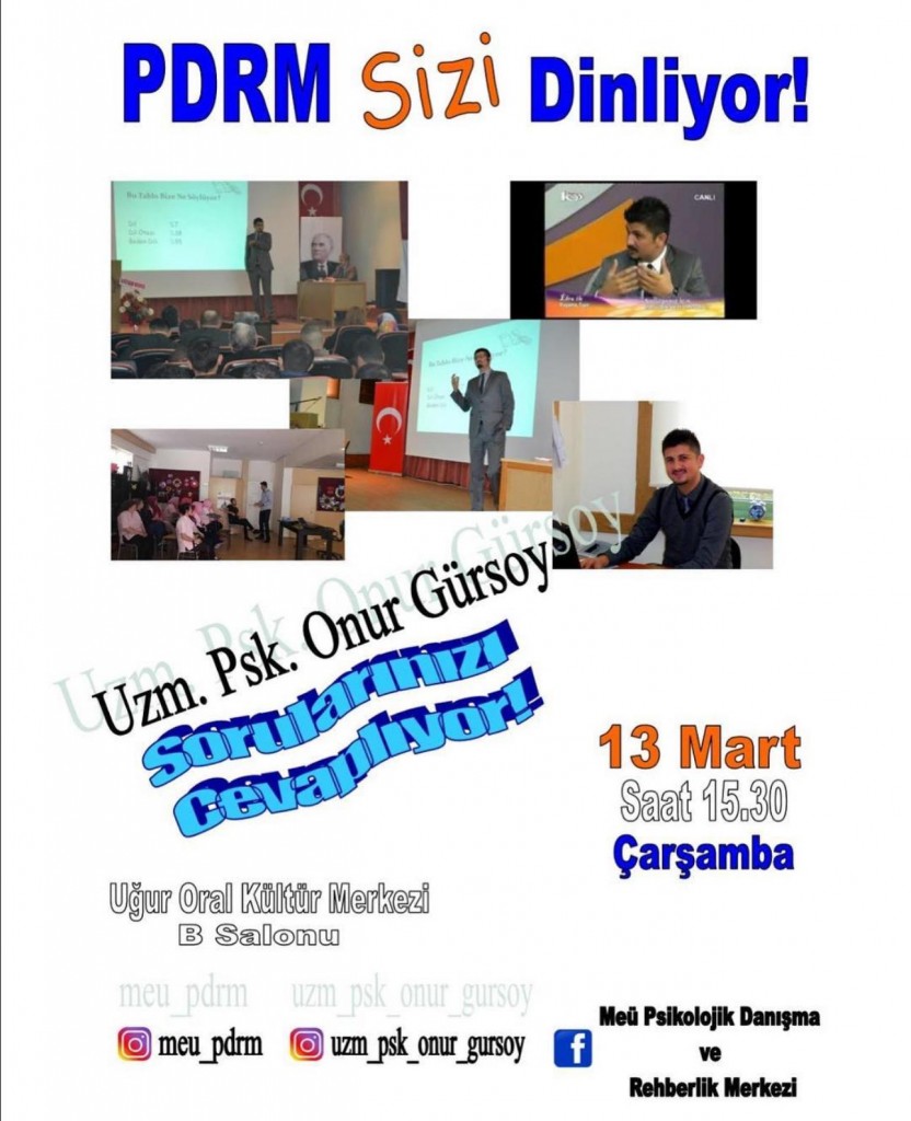 13 Mart 2019 tarihinde Üniversitemiz Öğrencilerine yönelik "PDRM SİZİ DİNLİYOR " adlı söyleşi gerçekleştirilmiştir.