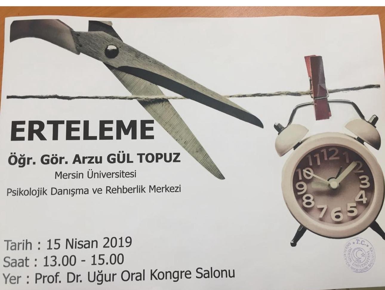 15 Nisan 2019 tarihinde Öğr. Gör. Arzu GÜL TOPUZ tarafında "ERTELEME" konulu seminer gerçekleştirildi.