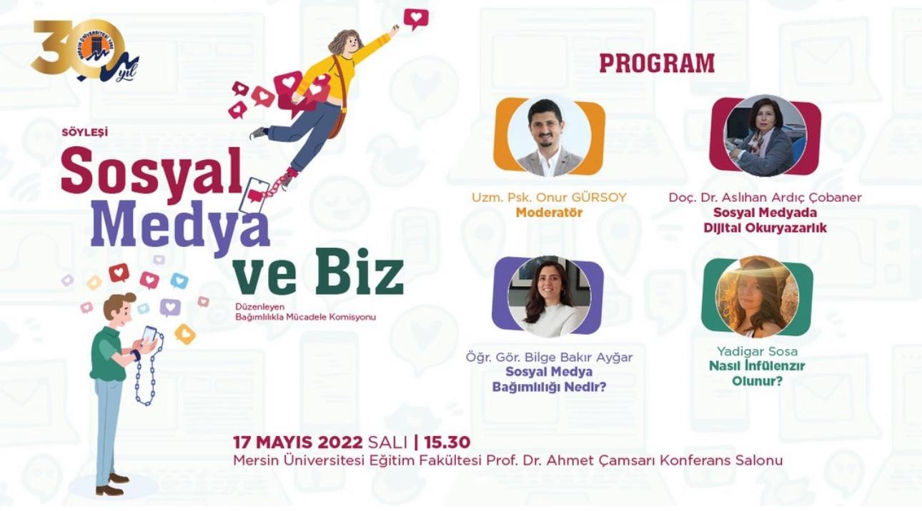 17 Mayıs 2022 tarihinde Bağımlılıkla Mücadele Komisyonun düzenlediği "Sosyal Medya ve Biz " isimli seminer Öğr. Gör. Onur GÜRSOY' un moderatörlüğünde gerçekleştirildi.
