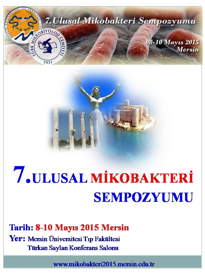 7. Ulusal Mikobakteri Sempozyumu, Türk Mikrobiyoloji Cemiyeti Mikobakteri Çalışma Grubu ve Mersin Üniversitesi Tıp Fakültesi Tıbbi Mikrobiyoloji Anabilim Dalı, 8-10 Mayıs 2015, Tıp Fakültesi Türkan Saylan Konferans Salonu-mersin.