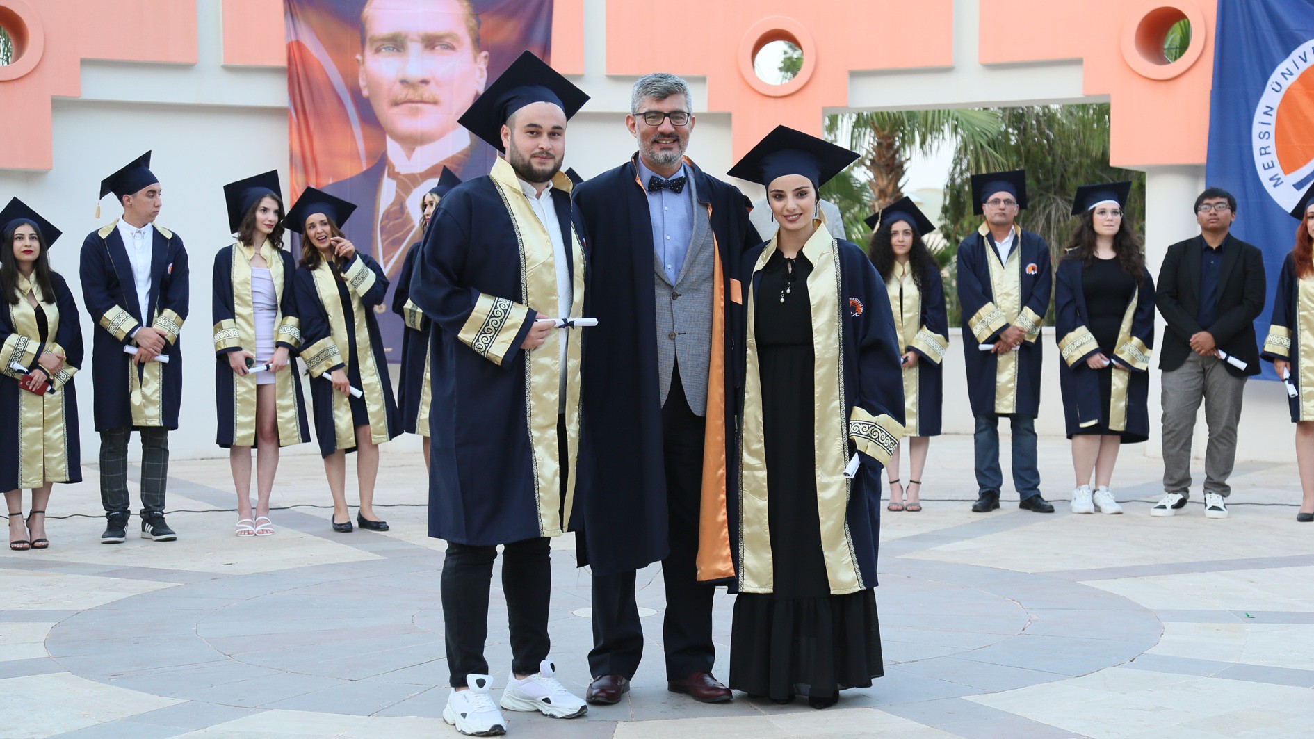 İlk olarak Üniversitemiz İletişim Fakültesi binasının önüne 2021-2022 mezunlarımız adına, İletişim Fakültesi Dekanı Prof. Dr. Aslıhan Doğan Topçu, öğretim elemanları ve öğrencilerimiz tarafından hatıra fidanı dikildi. Daha sonrasında Üniversitemiz Amfitiyatrosunda gerçekleşen mezuniyet törenine geçildi. Törene, Üniversitemiz Rektör Danışmanı Prof. Dr. Murat Yakar, Tıp Fakültesi Dekanı Prof. Dr. Ali Kaya, İletişim Fakültesi Dekanı Prof. Aslıhan Doğan Topçu, TRT Çukurova Bölge Müdürü Sebahattin Kahraman, Basın İlan Kurumu Mersin Şube Müdürü Abdurrahman Bahşişoğlu, Basın İlan Kurumu Adana Şube Müdürü Çetin Oranlı, Mersin Gazeteciler Cemiyeti Başkanı Kaya Tepe, Voice Bros Prodüksiyon Şirketi Kurucusu Onur Kıratlı, öğretim elemanları, idari personel ile mezun öğrencilerimizin aileleri katıldı.